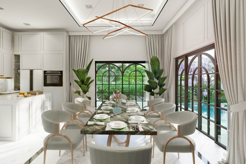 Вилла:Просторная гостиная и обеденная зона открытой планировки выходит на сад и бассейн с водопадом, окруженным высокой стеной. Спальни с широкими балконами и видами на красивый холмистый зеленый пейзаж. В каждой спальне есть ванная комната с ванной на уровне пола и отдельным душем, стильно оформленная в черно-белых тонах. Дополнительную комнату в гостиной на нижнем этаже можно использовать как гостиную или превратить в третью спальню, в которой с комфортом могут разместиться до восьми человек. Большая кухня с барной стойкой полностью оборудована всем необходимым.
