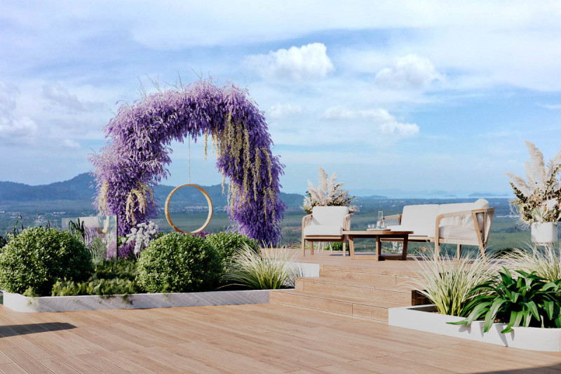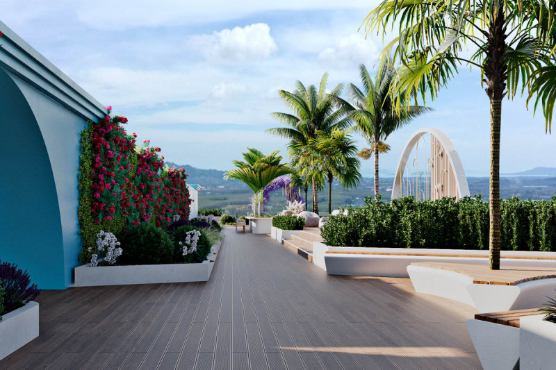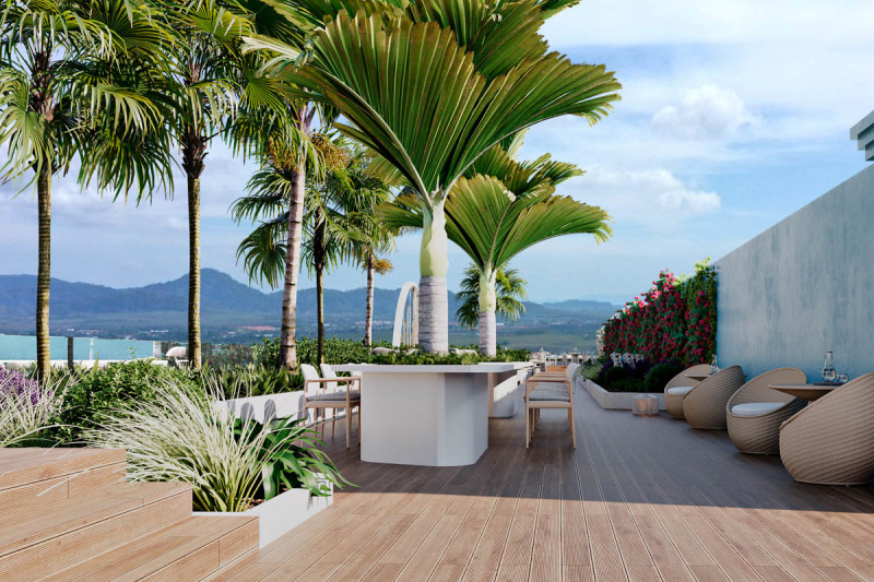 В комплексе: Новый кондоминиум расположен в 200 метрах от пляжа Банг Тао - второго по протяженности пляжа Пхукета, где до сих пор жива аутентичная атмосфера. При проектировании создатели вдохновлялись пейзажами Андаманского моря, а само здание отчетливо напоминает круизный лайнер, на верхней палубе которого расположились бассейн и терраса для принятия солнечных ванн. Также на крыше отведено место для спортивно-оздоровительного центра, бара и ресторана, из которых открываются панорамные виды на море. На первом этаже комплекса, помимо большой парковки, запланированы лобби и ресeпшн. С момента запуска проект станет отелем, позволяя владельцам апартаментов зарабатывать на буме туристической отрасли. Дополнительный фактор привлекательности для отдыхающих — предлагаемая гостям специальная программа омоложения и борьбы с возрастными изменениями, включающая эстетическую медицину, медитацию, йогу, традиционную сауну и криосауну, массаж, услуги диетологов и индивидуальные программы здорового питания.