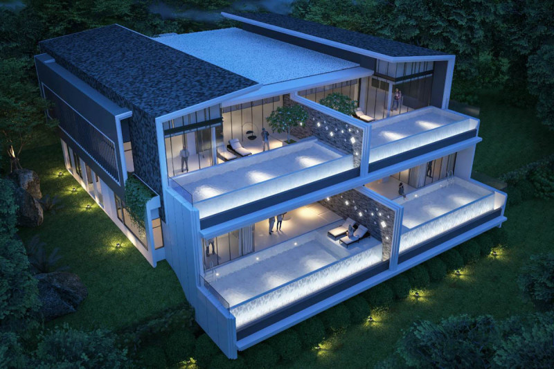 В апартаментах: Двухэтажные квартиры с частными бассейнами, зонами барбекю, джакузи. В каждой спальне предусмотрены гардеробные. Характерная особенность – наличие виной галереи. Все квартиры с одним из самых лучших видов на Андаманское море. Высокие потолки, огромные гостиные пространства, широкие террасы спроектированы известными европейскими дизайнерами и предусматривают достойный комфорт соотносящийся вложенными средствам.