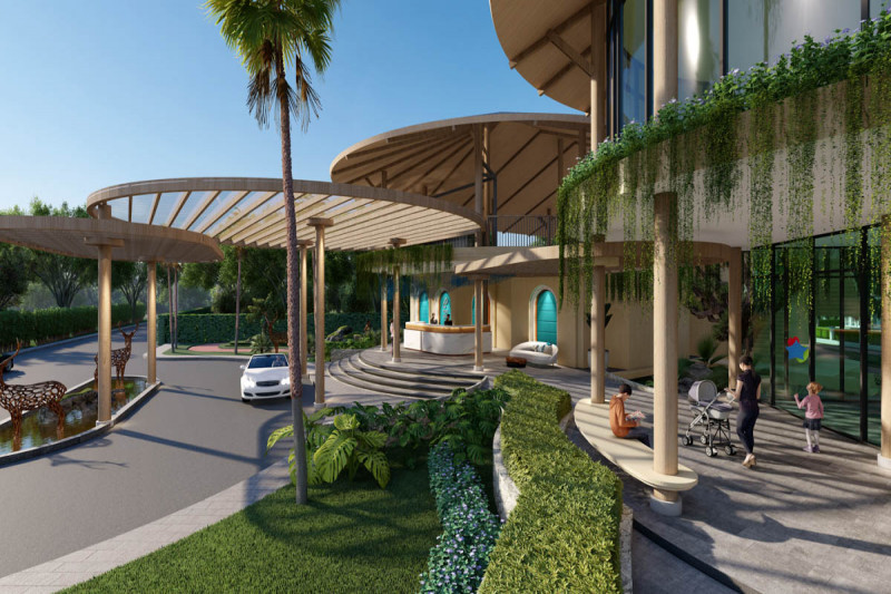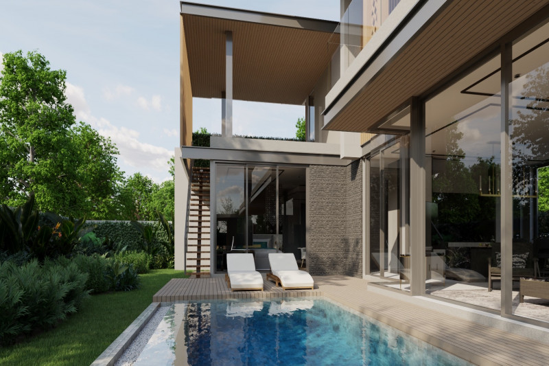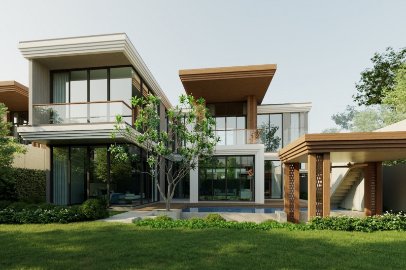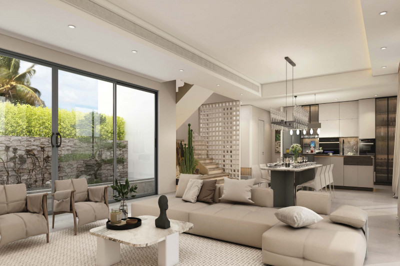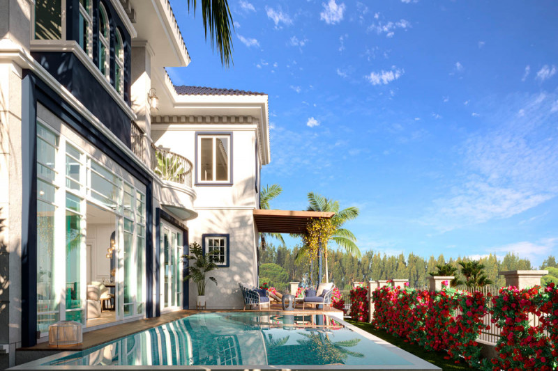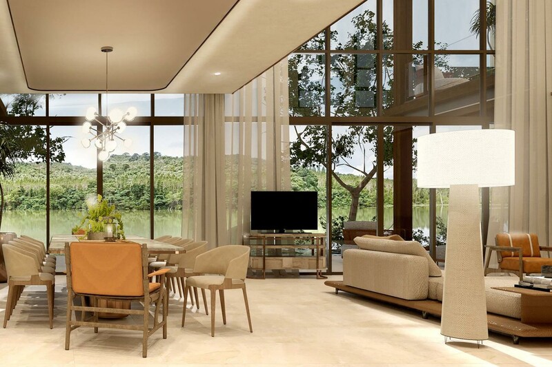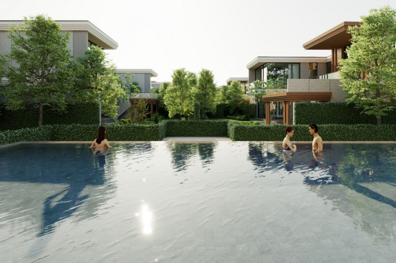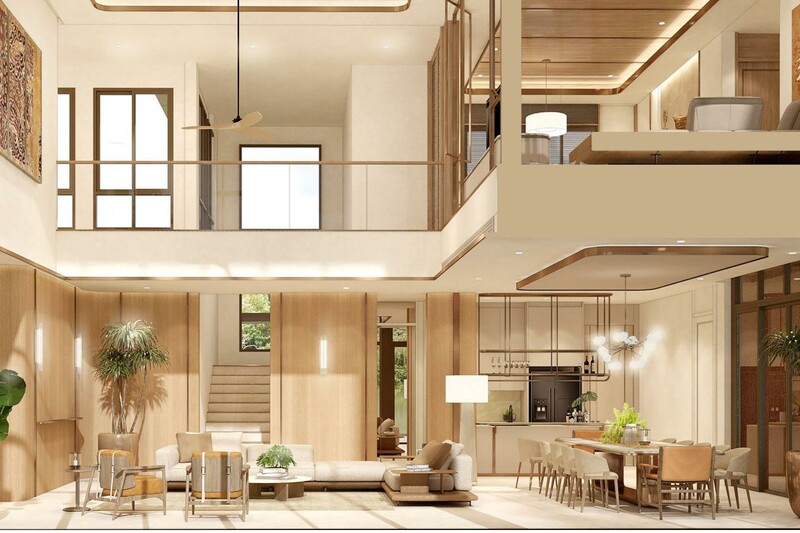 Вилла:Открытость пространству дает отсутствие заборов, каждая из вилл границей прилегает к водному каналу, озеру или тропическому саду. Главное здание включает гостиную, библиотеку, рабочий кабинет, кухню и главную спальню. Отдельными сооружениями представлены гостевые спальни и веранда с барной стойкой в бассейне. Вилла наполнена деталями дизайна и статуями в классическом азиатском стиле.