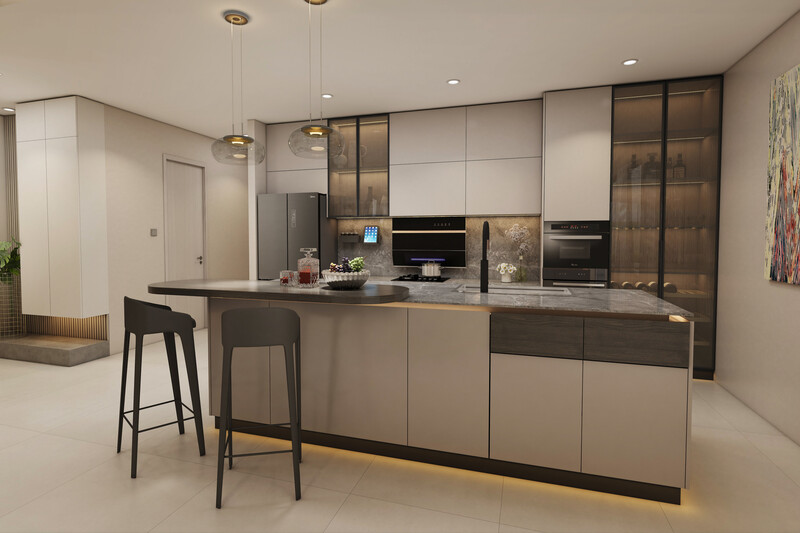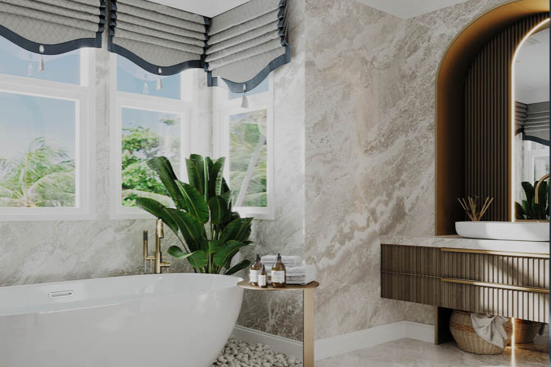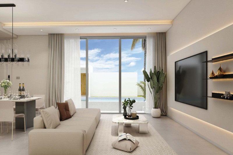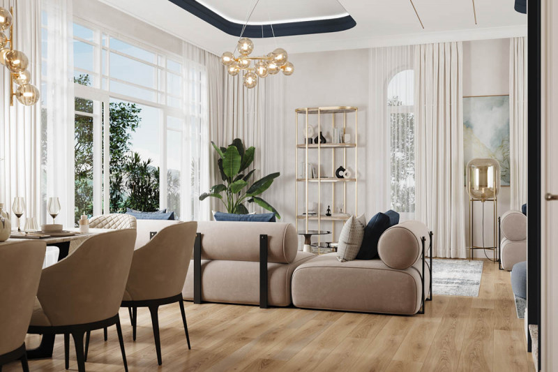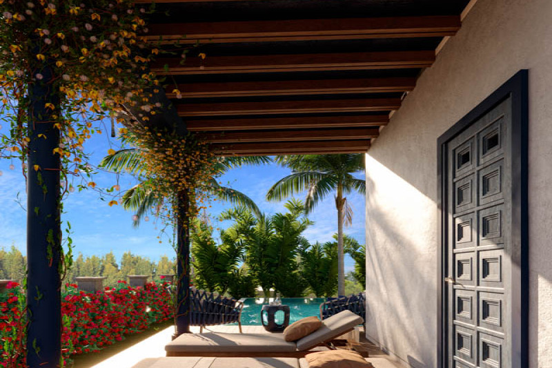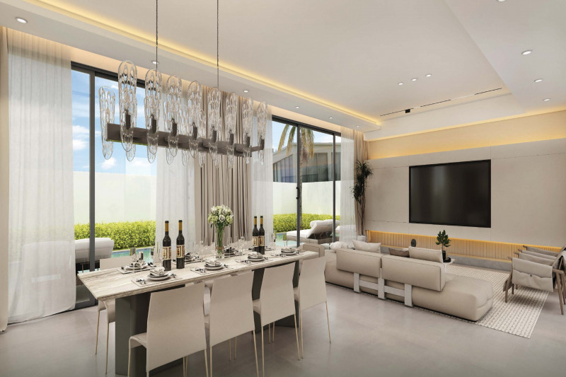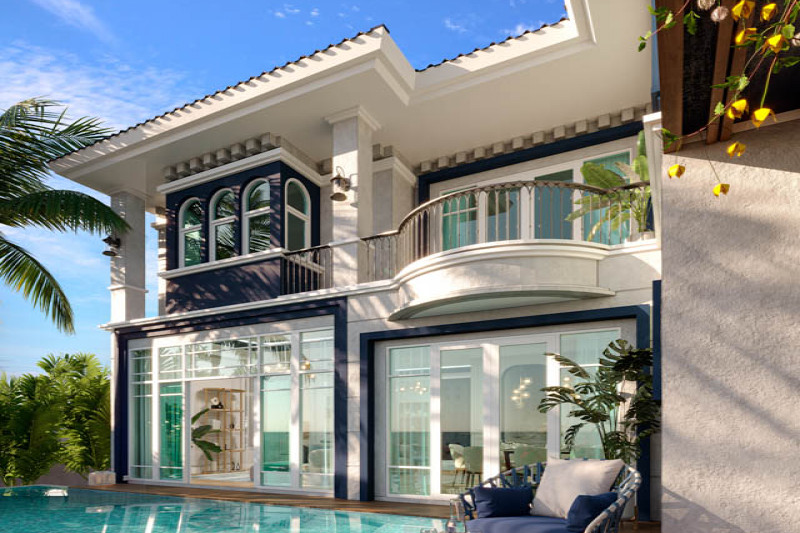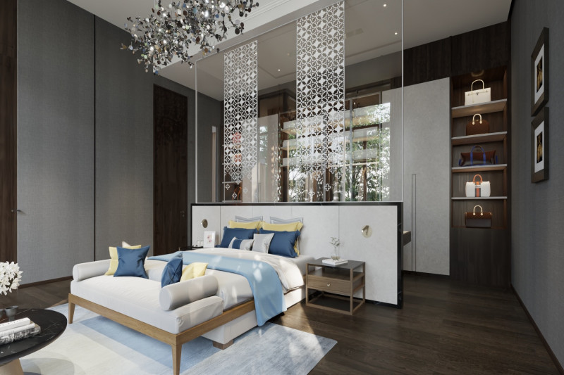 Вилла:Открытость пространству дает отсутствие заборов, каждая из вилл границей прилегает к водному каналу, озеру или тропическому саду. Главное здание включает гостиную, библиотеку, рабочий кабинет, кухню и главную спальню. Отдельными сооружениями представлены гостевые спальни и веранда с барной стойкой в бассейне. Вилла наполнена деталями дизайна и статуями в классическом азиатском стиле.