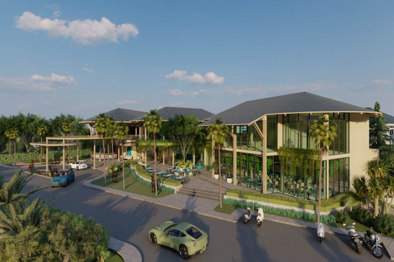 В комплексе: В тропическом комплексе 75 вилл в традиционном азиатском стиле с каналами, озерами и садами.