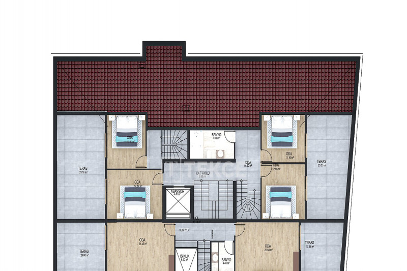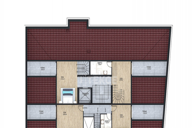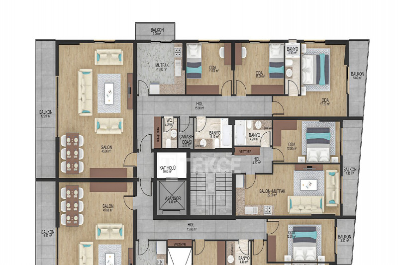 - Типы квартир: 2,5+1 / 3+1 / 3,5+1 / 4+1 / 5+1 дуплекс