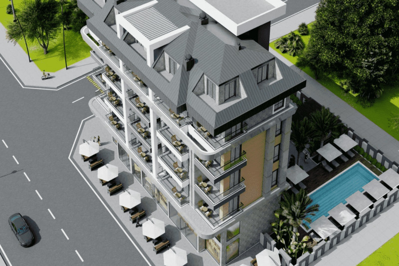 Строительство нового современного жилого комплекса в центре Аланьи, в 500 м от пляжа Клеопатры.