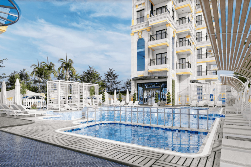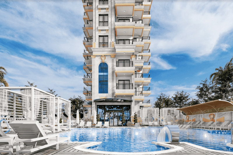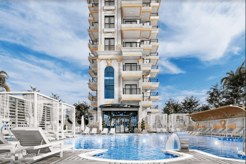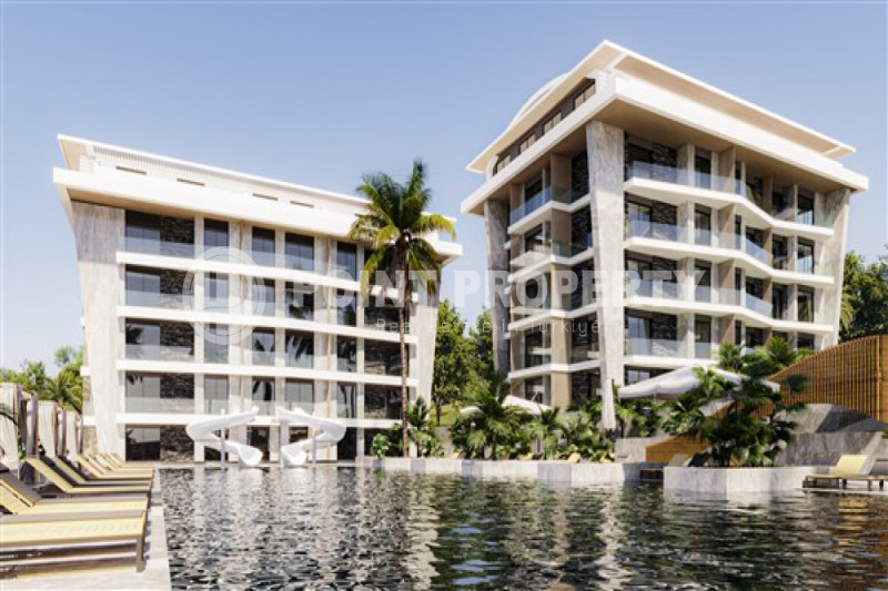 Новый комплекс апартаментов класса люкс в центре Алании, в 500 м от моря и пляжа Клеопатра.