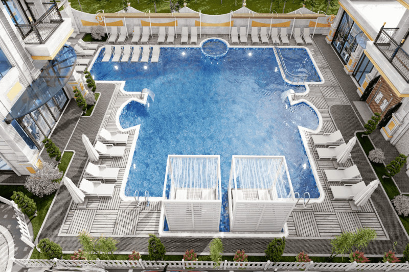 Вся инфраструктура проекта была разработана так, чтобы создать соответствующий уровень качества и максимально приятную атмосферу для комфортного проживания или отдыха в солнечной Алании.