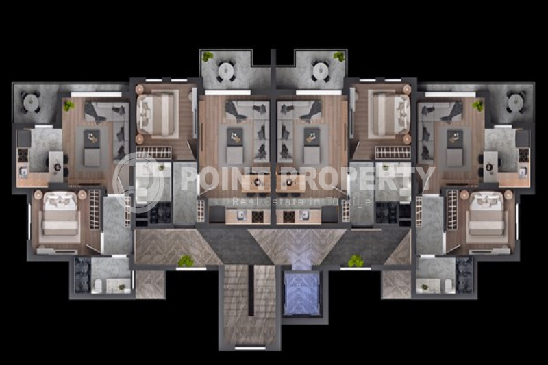 - 1 апартамент – 3+1 (дуплекс) и 6 апартаментов 2+1 (дуплексы) на 9 этаже