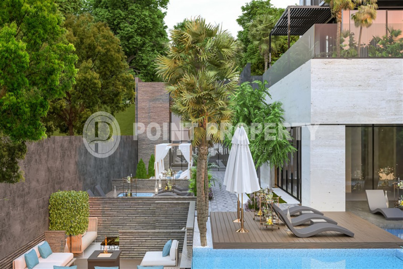 - 2 двухэтажных пентхауса 4+1 185 м² ( дуплекс) – 3 санузла (2 с душевой кабиной) и 2 балкона