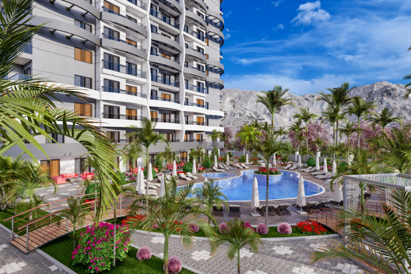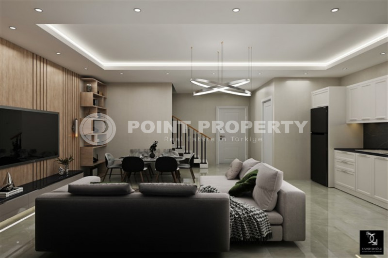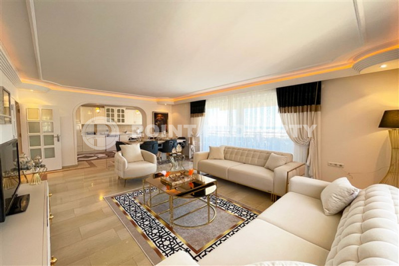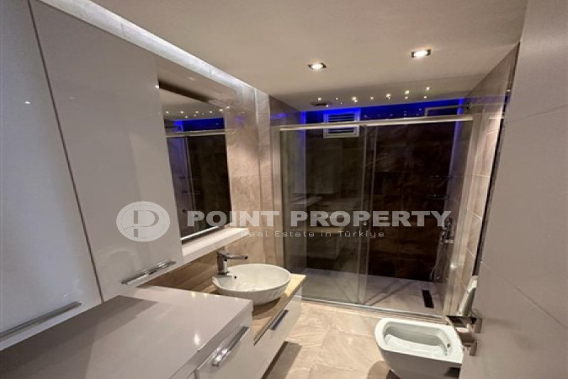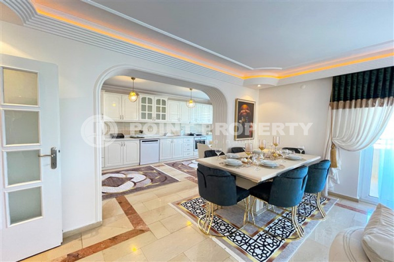 Видовой меблированный дуплекс 3+1, 230м², в комплексе с инфраструктурой в Махмутларе, 100м от моря
