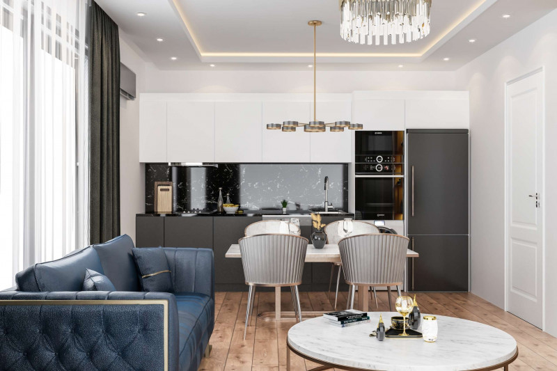 Апартаменты продаются с полным комплектом мебели и бытовой техники, текстилем и предметами интерьера, в том виде, как представлено на фото.