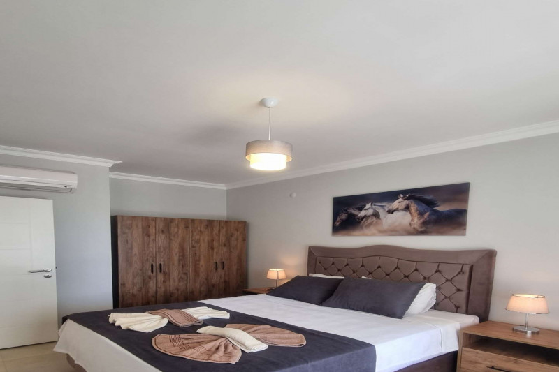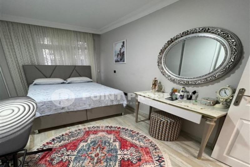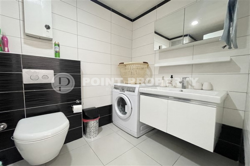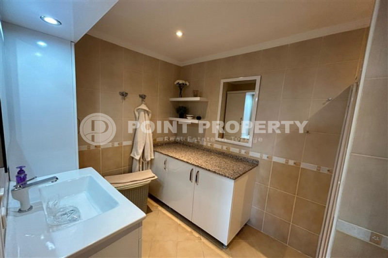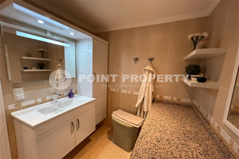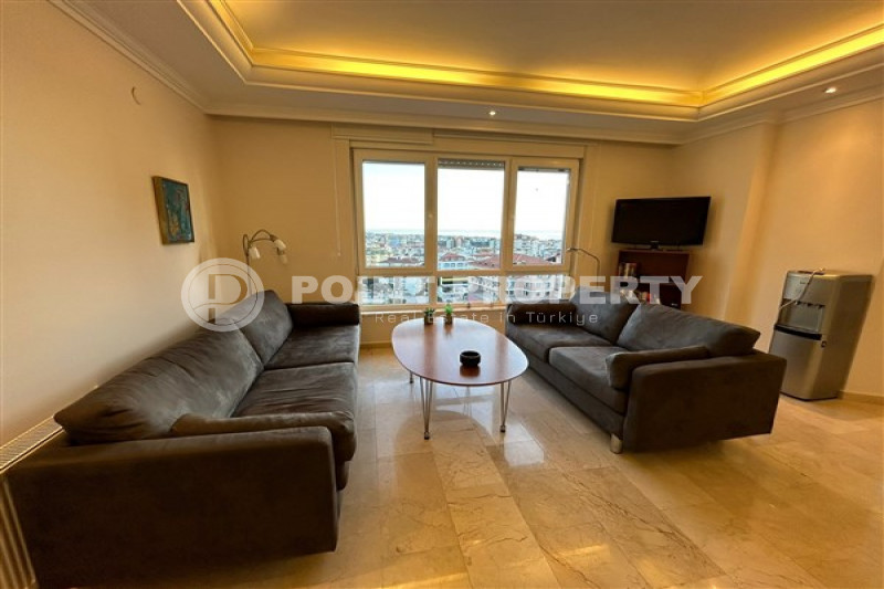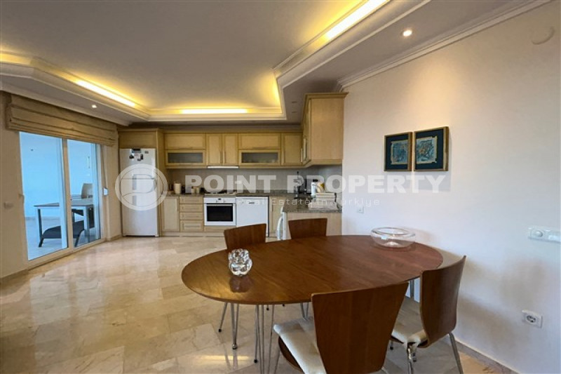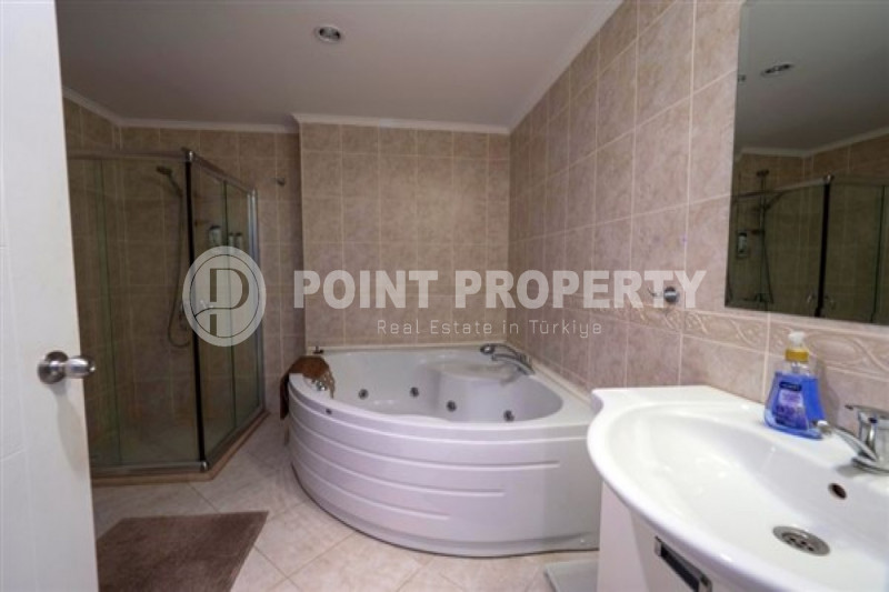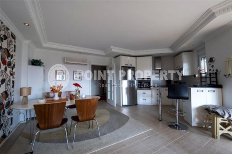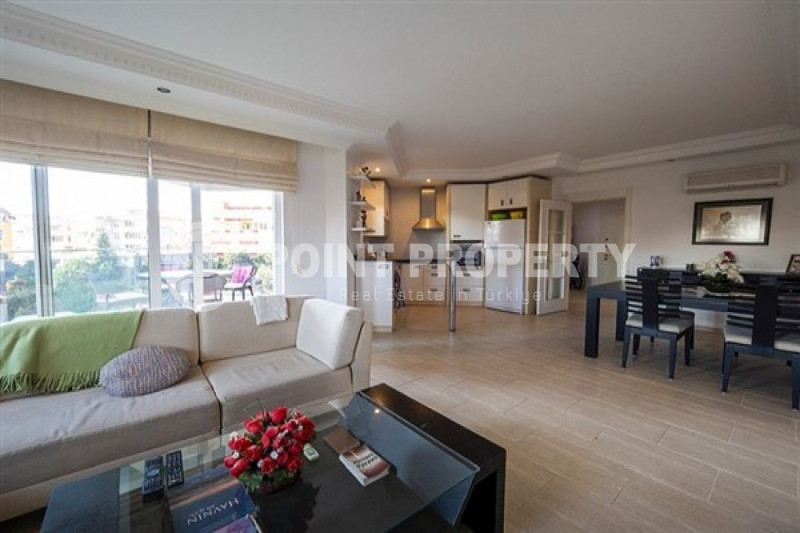 Для соискателей просторной, готовой к проживанию квартиры с отличной локацией предлагаем рассмотреть трехкомнатную квартиру, планировкой 2+1 и площадью 120м². Апартаменты имеют салон, совмещенный с открытой кухонной зоной американского типа, две спальни, две ванные комнаты и два больших балкона. Гостиная имеет оригинальную форму. Стильный угловой кухонный гарнитур имеет полный комплекс бытовой техники хороших производителей и симпатичную барную стойку, отделяющую кухню от зоны отдыха, где установлена элегантная мягкая группа. В спальнях разместился необходимый набор мебели. Ванные комнаты хороших размеров укомплектованы качественной современной сантехникой. В прихожей установлен большой гардероб. С больших балконов открывается, захватывающий дух, вид на бескрайнее Средиземное море, Аланийский полуостров со старинной крепостью. Просто со своего балкона вы можете любоваться неимоверной красоты, каждый день разными, аланийскими закатами.