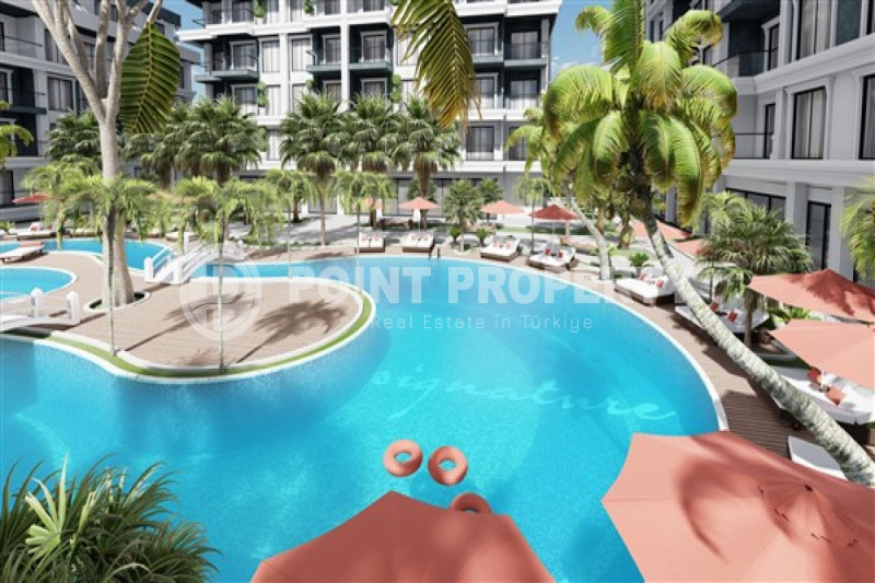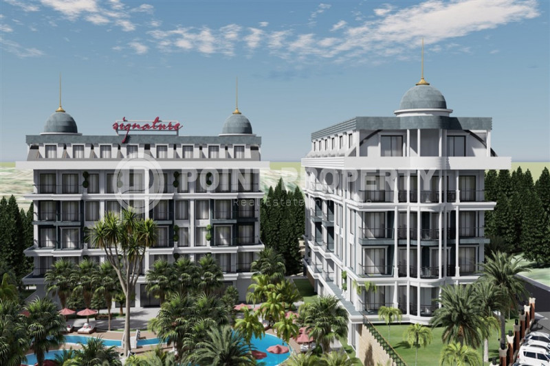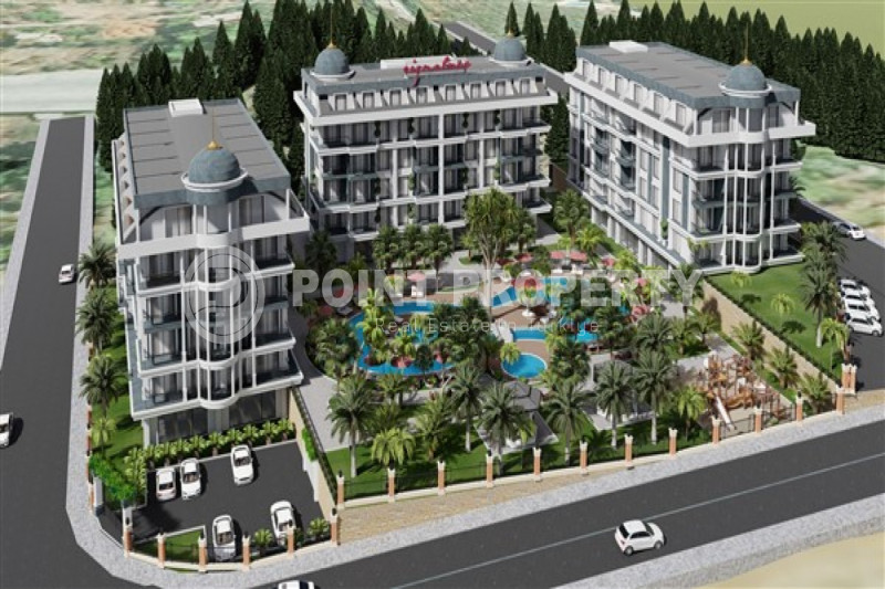 Комплекс занимает большую ухоженную территорию с ландшафтным садом и находится в тихом, комфортабельном районе Алании – Джикджилли.