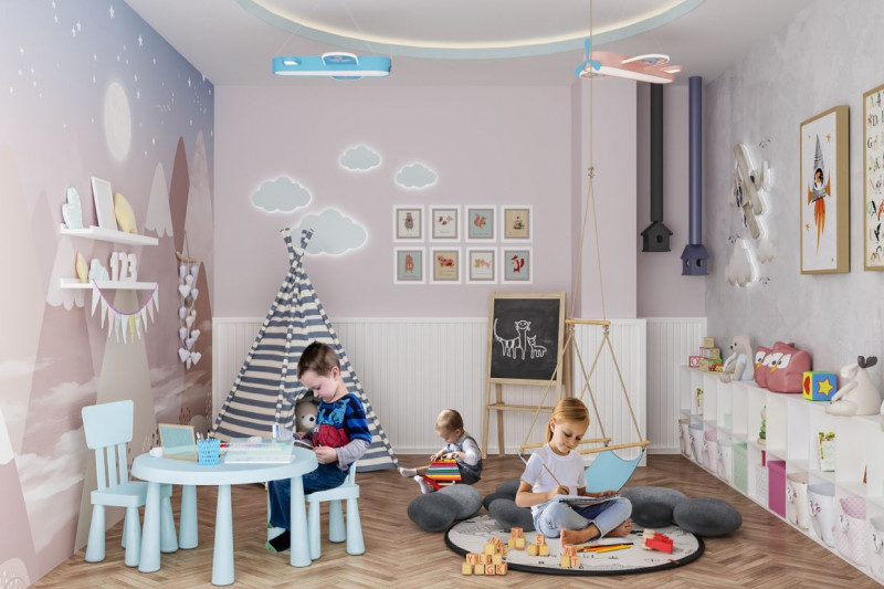 Концепция общественного пространства предусматривает развитую инфраструктуру, обеспечивающую разнообразный досуг в любой сезон. Для детей здесь организованы современные игровые пространства, а для взрослых — уединенные места отдыха, где можно организовать пикник, позаниматься йогой или спортом. Для семейного отдыха предусмотрены общие зоны, где можно насладиться просмотром фильма, поужинать в ресторане или провести время в SPA.