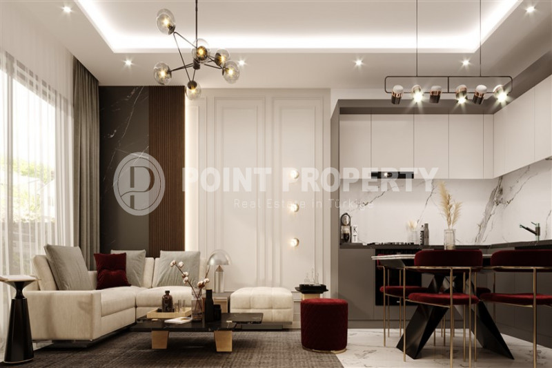 С удовольствием представляем вам готовую квартиру с двумя спальнями в жилом комплексе района Газипаша в близкой доступности от аэропорта. Квартира находится на первом высоком этаже жилого комплекса, который был сдан в 2021 г. В апартаментах выполнен стильный чистовой ремонт в выдержанных тонах, кухня открытого типа и имеет встроенный кухонный гарнитур. Наличие двух спальных комнат дает возможность разместиться свободно семье из 4-х человек и более. Не мало важный плюс, что в квартире есть два просторных балкона и две ванные комнаты. Данный вариант предлагается к продаже без техники и мебели, что является преимуществом для тех категорий покупателей, которые хотят видеть в квартире интерьер на свой вкус. Если же вам не захочется тратить свое время на поиски подходящей мебели, вы всегда можете обратиться к нашим менеджерам послепродажного обслуживания, благодаря которым, вы в кратчайшие сроки уже будете смотреть телевизор на новом диване.