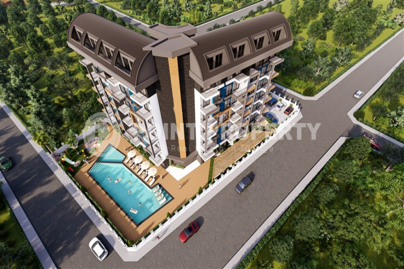 Приятно осознавать, что комплекс располагает достаточно большой ухоженной территорией, на которой расположен открытый бассейн, детская игровая площадка, беседка для отдыха и парковка. Внутри комплекса есть лифт, который с легкостью доставить вас на верхние этажи. Расстояние до центра города составит 750 м, расстояние до моря 2800 м.