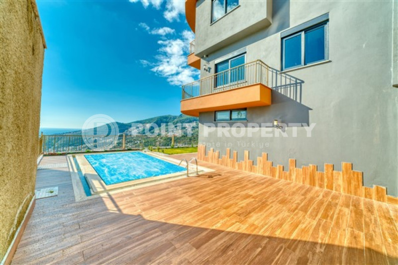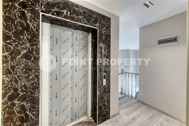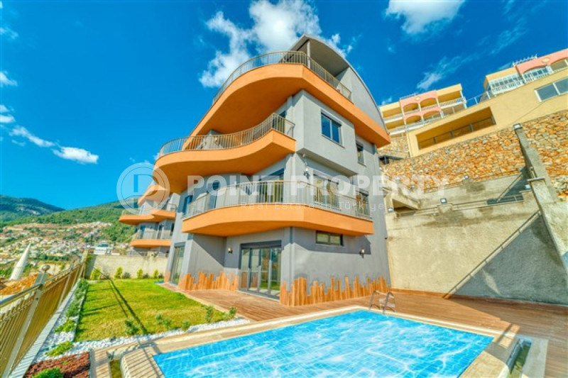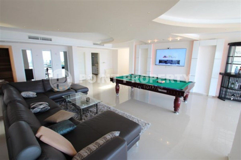 Четырехэтажная вилла будет сдана в эксплуатацию в апреле 2023 года, имеет планировку 4+2 и общую площадь 424м². Входной этаж предназначен для инфраструктуры. Здесь будут расположены тренажерный зал, сауна, хамам и комната отдыха. Два жилых этажа располагают двумя просторными гостиными, одна из нах объединена с вместительной кухней американского типа, четырьмя спальнями, функциональными гардеробными и ванными комнатами с качественной мебелью и сантехникой. Три больших балкона подарят восхитительные виды. На крыше разместился зимний сад, площадью 50м². Для комфорта собственников и гостей вилла располагает лифтом. На уровне входного этажа находится потрясающая остекленная терраса, площадью 125м². Здесь обустроена уютная зона отдыха с баром, кинотеатром и джакузи. Радом разместился большой открытый плавательный бассейн с зоной отдыха.