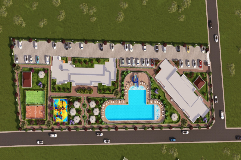 Земельный участок, на котором возводится резиденция, занимает большую территорию 3 886 м². На охраняемой территории с ландшафтным дизайном и освещением, плавательным бассейном и зонами для отдыха детей и взрослых будут возвышаться 2 одиннадцатиэтажных жилых корпуса, включающих 120 квартир планировок 1+1, 2+1 и 3+1 от 60 до 156 м².
