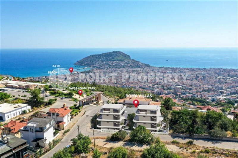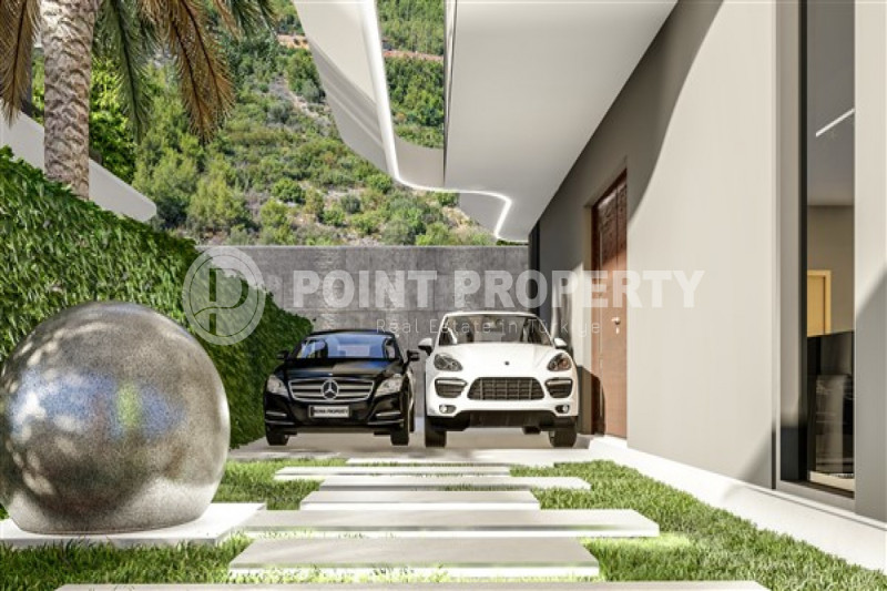 Вся территория уже облагорожена и украшена большим количеством зелени с помощью ландшафтного дизайнера. Если говорить о парковочных местах, то на открытой парковке есть место для шести машин, дополнительно имеется гараж на две машины. Для максимально комфортного отдыха или жизни на вилле на территории дома есть личный подогреваемый инфинити бассейн, который плавно перетекает в природу и бесконечное небо с закатами Алании! Рядом с бассейном также организована лаундж-зона с возможностью разведения костра, у которого можно проводить вечера с гостями или семьей. Расстояние от виллы к пляжу Клеопатры составит 5км, а к центру Алании всего 3км.