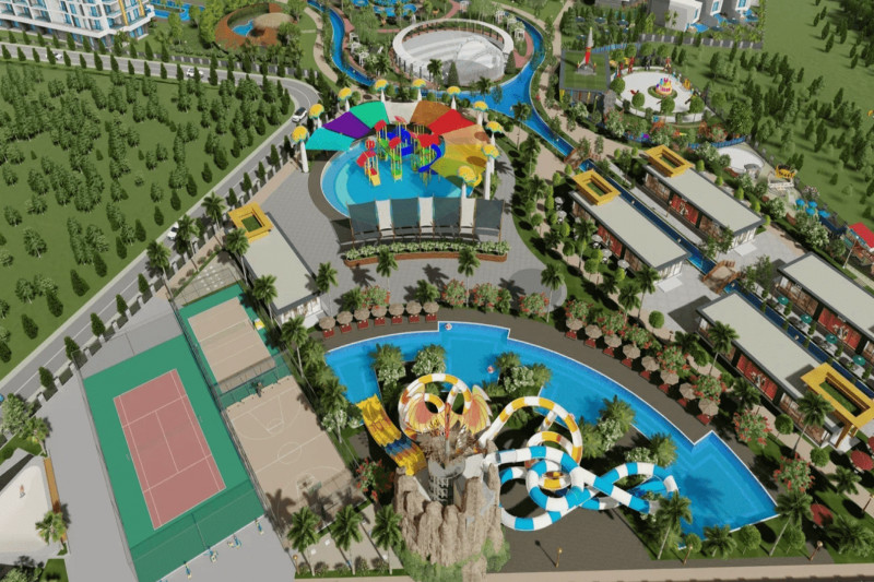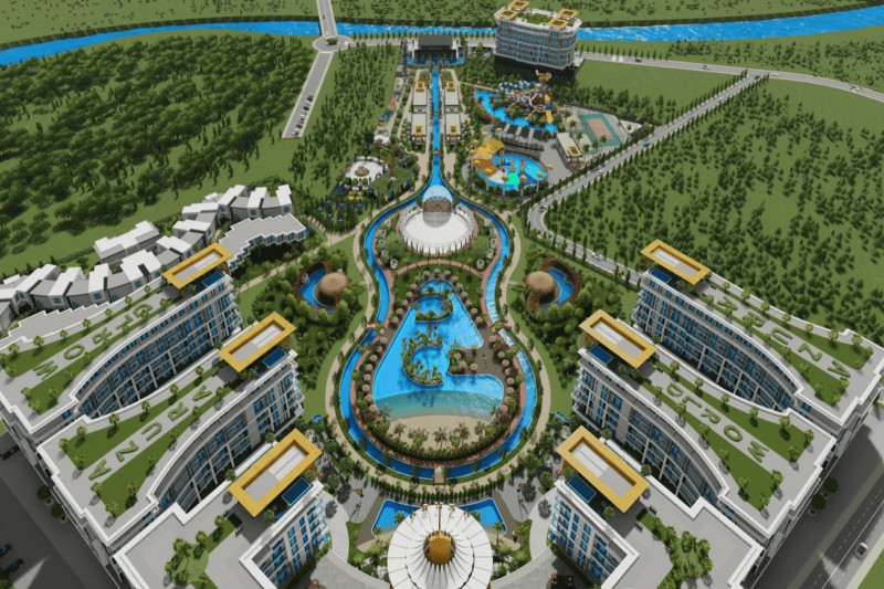Внутренняя инфраструктура комплекса включает в себя: аквапарк для взрослых, аквапарк для детей, лунапарк, открытый и крытый бассейны, спортивные и детские площадки, мини-клуб, бутики, рестораны и кафе. Для активного отдыха и любителей спорта имеются тренажерный зал, футбольное поле, баскетбольная и волейбольная площадки, теннисный корт, настольный теннис, бильярд и боулинг.