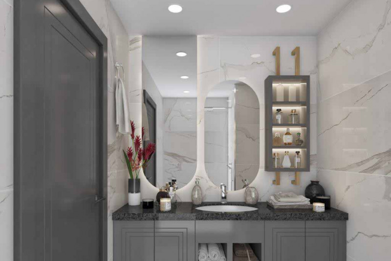 - оборудованный санузел (душевая кабина, сантехника, встроенная мебель с зеркалом, бойлер)