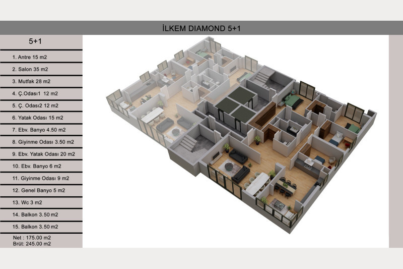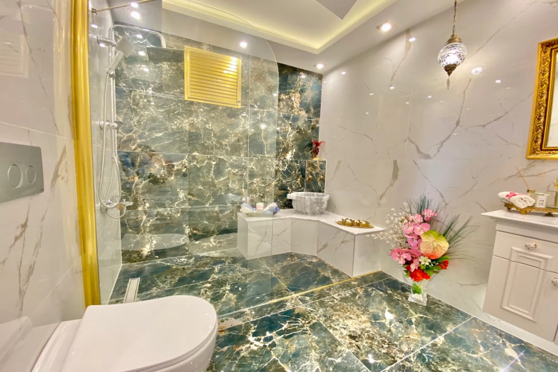 Прихожая, 3 сан.узла, зал, кухня-столовая, мини-кухня, 3 спальни, 2 гардеробные, балкон, терраса