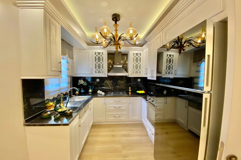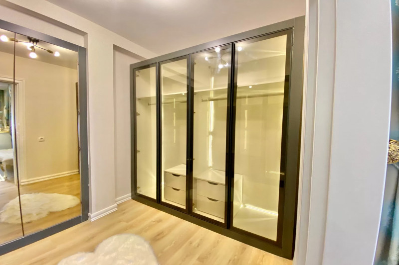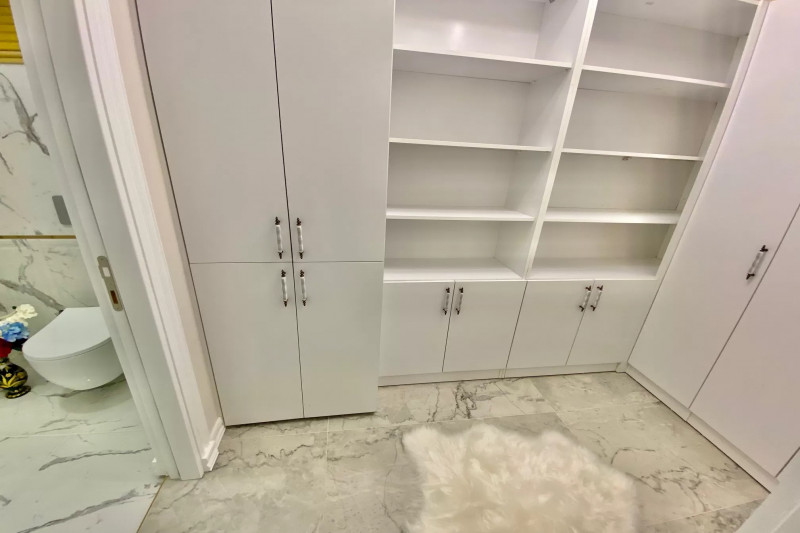 Кухонный гарнитур с каменной столешницей, шкафы в гардеробной