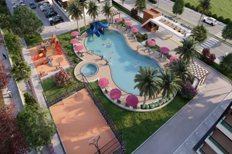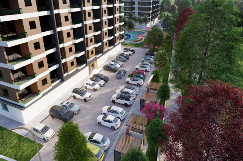 Предлагаемая квартира расположена на 3-м этаже в резиденции с бассейном и садом. Для удобства жителей на территории имеется отдельная парковка, а в целях безопасности установлены камеры видеонаблюдения. Основные объекты городской инфраструктуры - магазины, пекарни, аптеки, кафе, рестораны, ремонтные мастерские, отделения банков и связи и остановки общественного транспорта, находятся в 700 метрах от апартаментов, а расстояние от квартиры до моря составляет 900 метров.