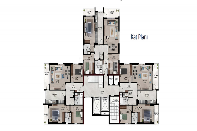 Здесь к вашим услугам представлены: взрослый и детские бассейны с аквапарком и развлекательными зонами, парк аттракционов, детские игровые площадки, два ресторана, кинотеатр и зал для конференций. Роскошная СПА зона состоит из закрытого бассейна, соляной комнаты, сауны, парной, массажной комнаты и отдельного помещения для массажа, а также салона красоты и искусственного пляжа. На территории масштабного ивестпроекта находятся: спортивные площадки, зал для занятий спортом и йогой, прогулочные дорожки, просторная зона для приготовления барбекю и беседки на открытом воздухе. Роскошный садовый участок окружает отдельные парковочные места возле входа в здание. Система видеонаблюдения наряду с квалифицированной охраной обеспечивают безопасность в резиденции. Расстояние отсюда до самого центра района Тюрклер - не более 500 метров.