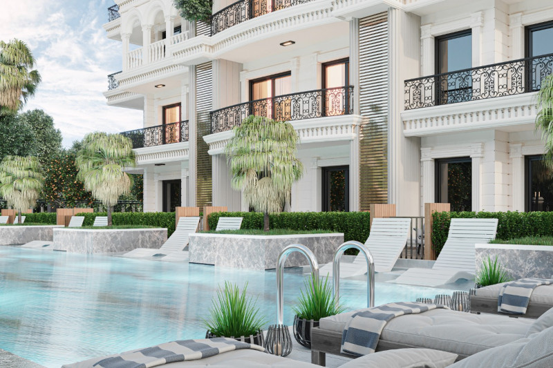 Инфраструктура комплекса, расположенного в одном километре от берега моря в районе Авсаллар, представляет собой стоянку для автомобилей, бассейн, внутренний бассейн, детскую игровую зону, барбекю, беседку, сауну, хамам, паровую комнату. Помимо прочего, в резиденции имеется свой отдельный кинозал для просмотра фильмов. Само жилое здание оборудовано удобным лифтом. Центр района Авсаллар располагается отсюда на расстоянии 750 метров.