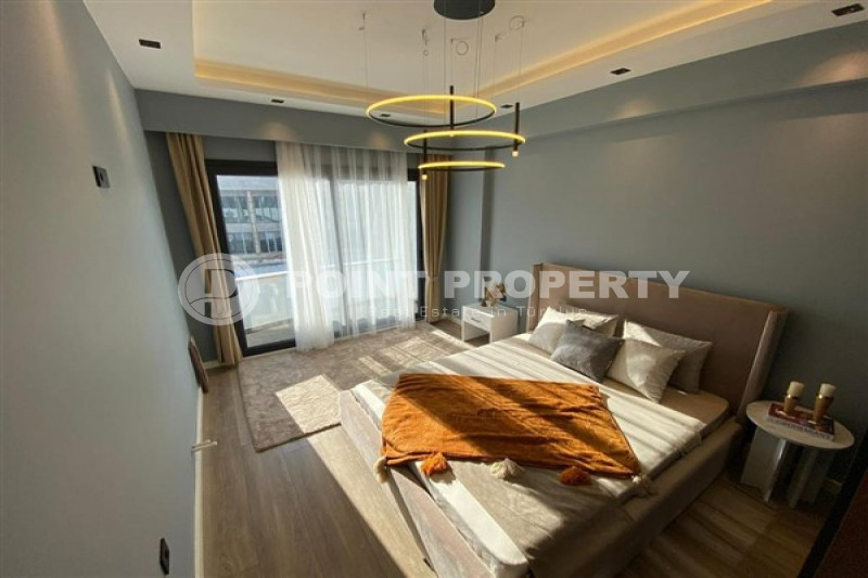Именно здесь, в новой резиденции 2022 года постройки, на 2 этаже расположена двухкомнатная квартира с площадью 55 м². Апартаменты с планировкой комнат 1+1 продаются с полным комплектом мебели в следующих комнатах: гостиной с кухней и отдельной спальной. Помимо прочего, здесь имеется открытый балкон и ванная комната. Классическая квартира с диванами, кроватями, кухонным гарнитуром и бытовой техникой подходит как для постоянного проживания, так и для сдачи в аренду с целью получения регулярной прибыли.