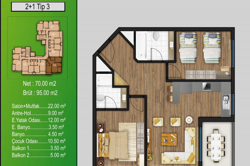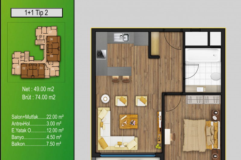 За спокойную уютную атмосферу, развитую инфраструктуру, длинные песчаные пляжи с пологим входом в море район Авсаллар часто выбирают молодые родители с детьми и те, кто предпочитает размеренный образ жизни, хорошую экологию и комфортный отдых у моря. В нескольких минутах ходьбы от центра этого прекрасного района недавно введён в эксплуатацию жилой комплекс, в котором выставлены на продажу небольшие апартаменты 1+1, общей площадью 51 м². В современной планировке квартиры, расположенной на 1-м этаже - совмещённая с кухней гостиная, спальня, санузел и балкон с видом на внутренний двор. Апартаменты предлагаются с чистовой отделкой, компактным кухонным гарнитуром, душевой кабиной и керамикой в санузле, что существенно облегчает процесс ремонта и позволяет оформить интерьер на свой вкус. Обдумывая дизайн квартиры, не забывайте о невероятно удобной услуге компании 1-Property - полном сопровождении покупателей на всех этапах, вплоть до заселения в новые апартаменты. Опытные юристы грамотно оформят сделку, а профессиональная команда отдела послепродажного сервиса возьмёт на себя решение всех бытовых и организационных вопросов - поможет найти бригаду рабочих, заказать мебель и технику и подключить коммуникации.