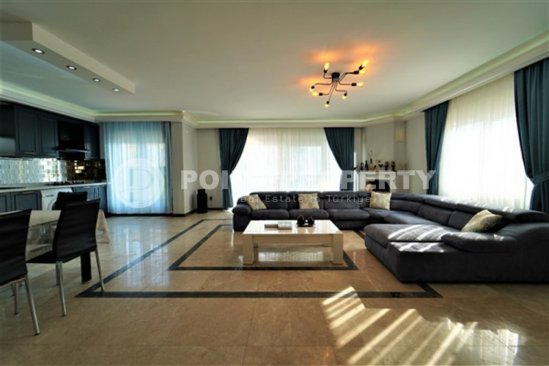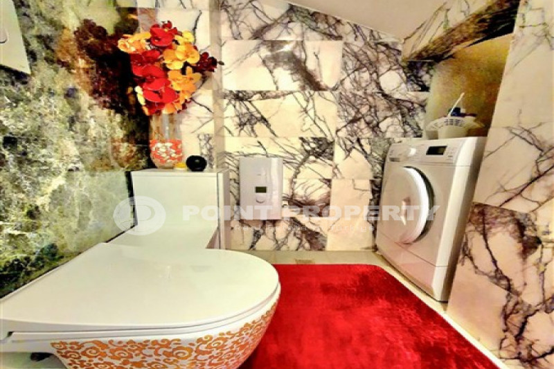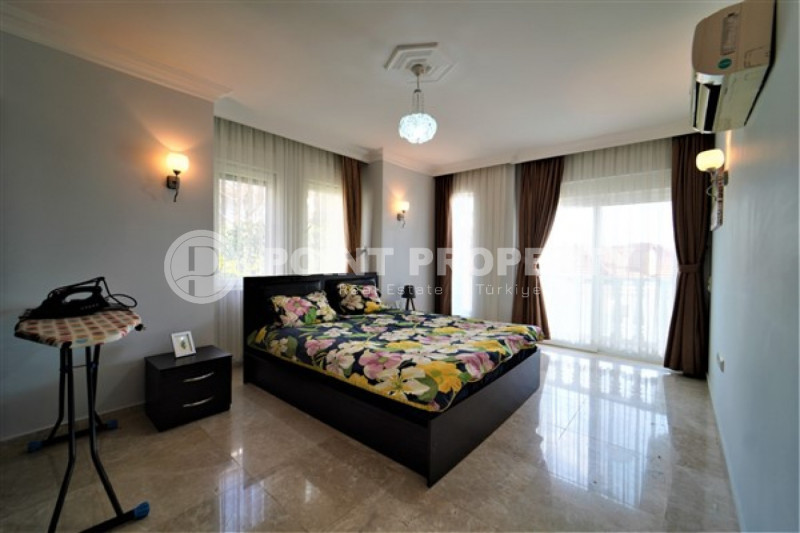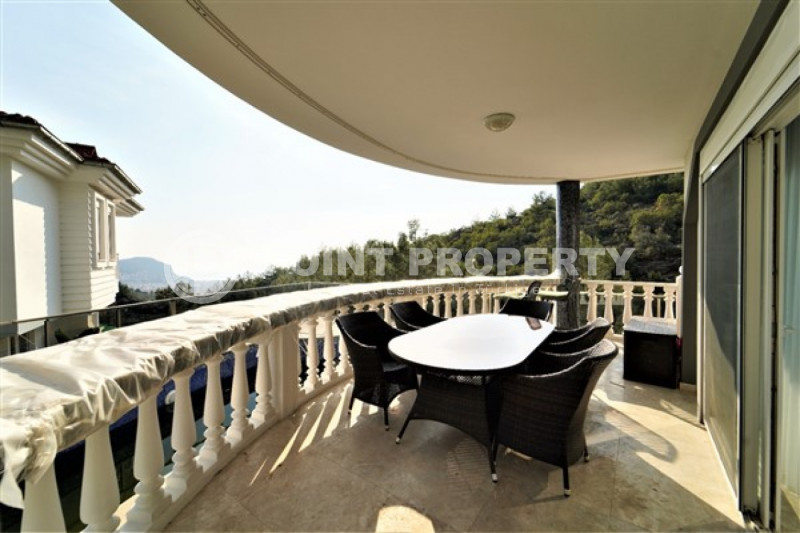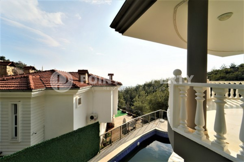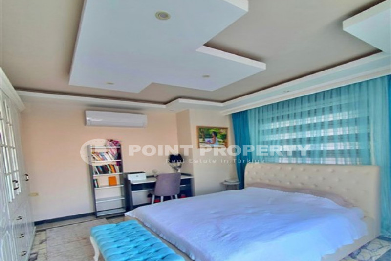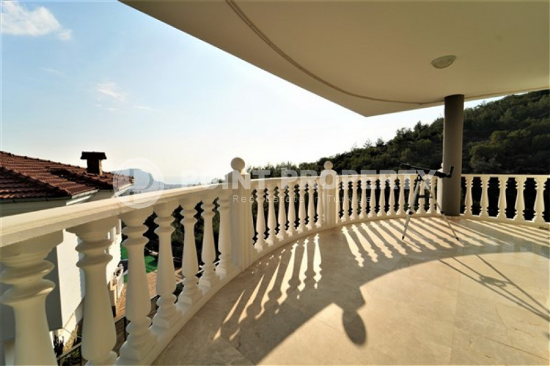 Наш вариант - вилла с планировкой комнат 3+1 и общей жилой площадью 215 м² находится на расстоянии восьми километров от морского берега и в семи с половиной километрах от центра города. Чтобы добраться из этого уединённого места проживания, находящегося в окружении хвойных лесов, до нужной точки города, вам необходимо будет воспользоваться услугами общественного транспорта, выезжающего из района Бекташ на регулярной основе. Ну а наличие собственного автомобиля будет ещё более достойным вариантом комфортного передвижения по Аланье. Дуплексная вилла 2015 года постройки, выставленная на продажу на днях, помимо стандартных спален с гостиной и кухней, также имеет: две ванные комнаты, три балкона и одну обзорную террасу. Вся имеющаяся классическая мебель, представленная на фотоматериалах, уже входит в полную стоимость элитного объекта недвижимости.