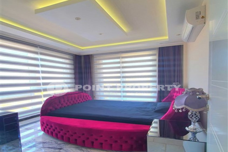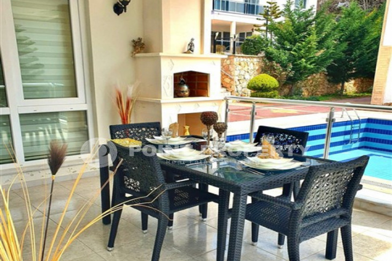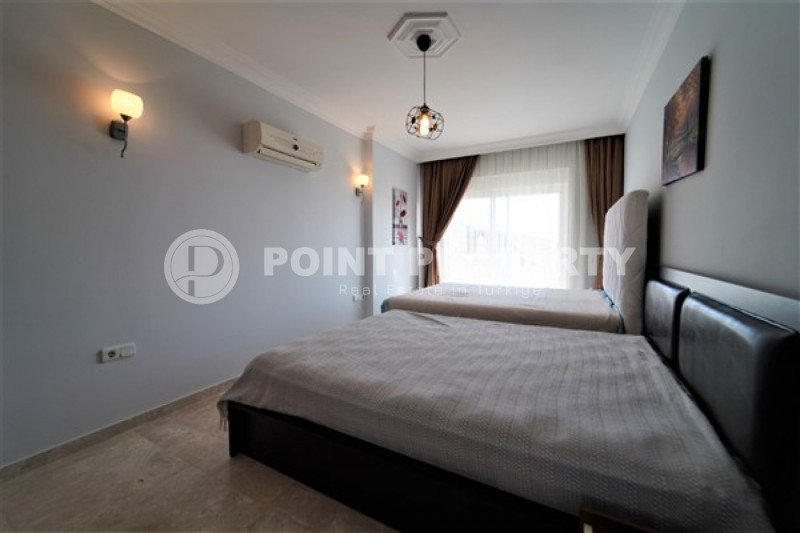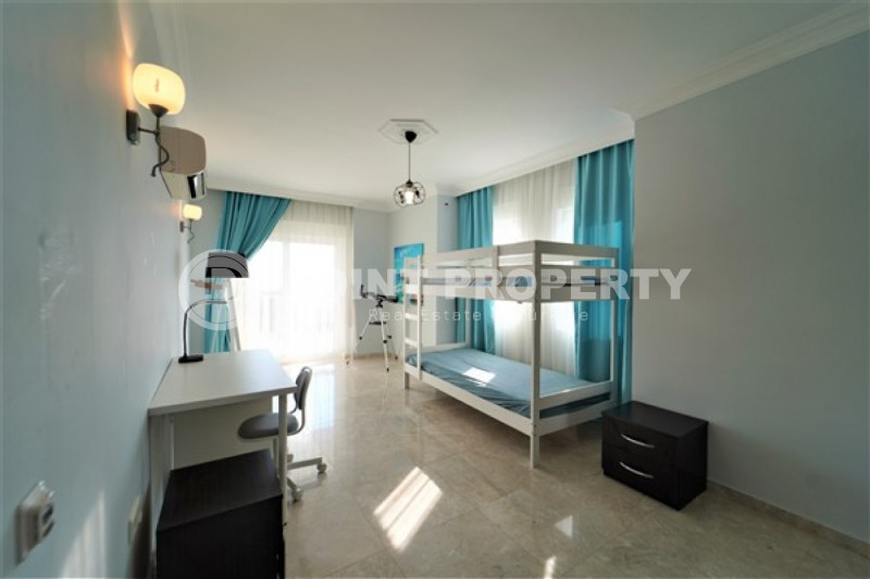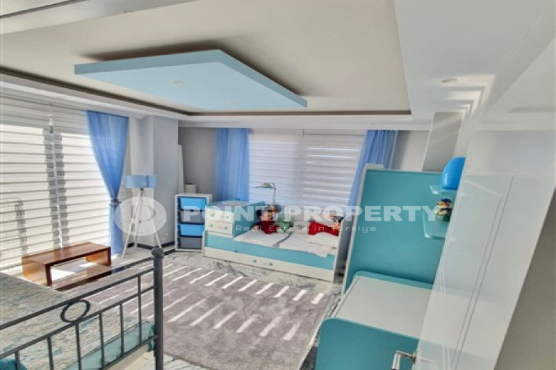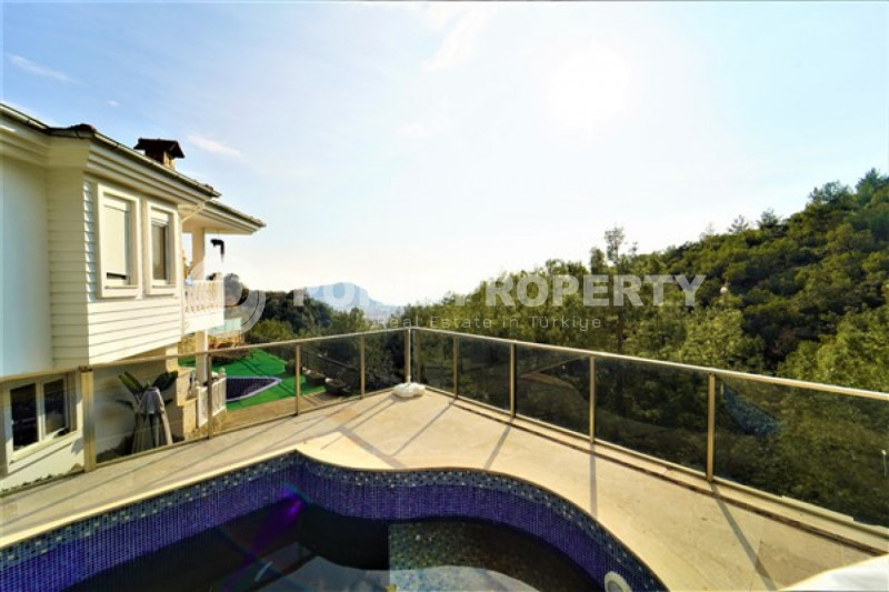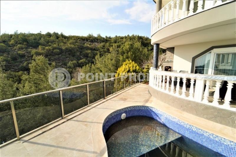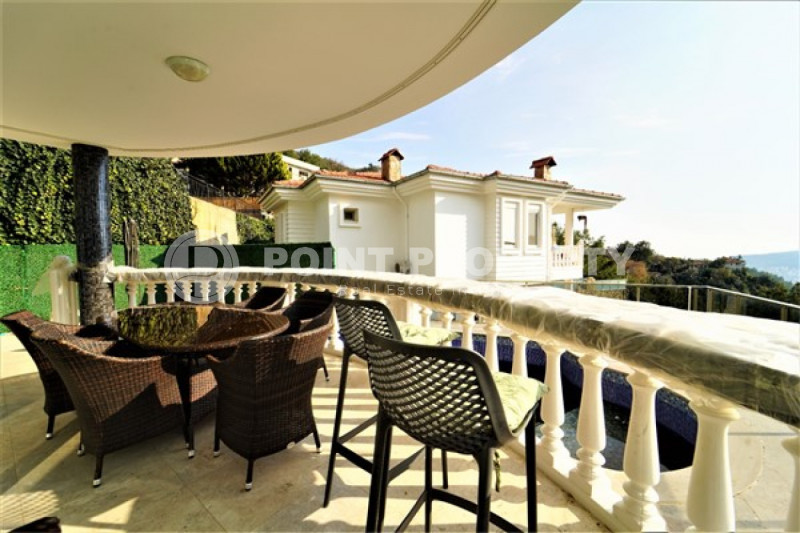 Наш вариант - вилла с планировкой комнат 3+1 и общей жилой площадью 215 м² находится на расстоянии восьми километров от морского берега и в семи с половиной километрах от центра города. Чтобы добраться из этого уединённого места проживания, находящегося в окружении хвойных лесов, до нужной точки города, вам необходимо будет воспользоваться услугами общественного транспорта, выезжающего из района Бекташ на регулярной основе. Ну а наличие собственного автомобиля будет ещё более достойным вариантом комфортного передвижения по Аланье. Дуплексная вилла 2015 года постройки, выставленная на продажу на днях, помимо стандартных спален с гостиной и кухней, также имеет: две ванные комнаты, три балкона и одну обзорную террасу. Вся имеющаяся классическая мебель, представленная на фотоматериалах, уже входит в полную стоимость элитного объекта недвижимости.