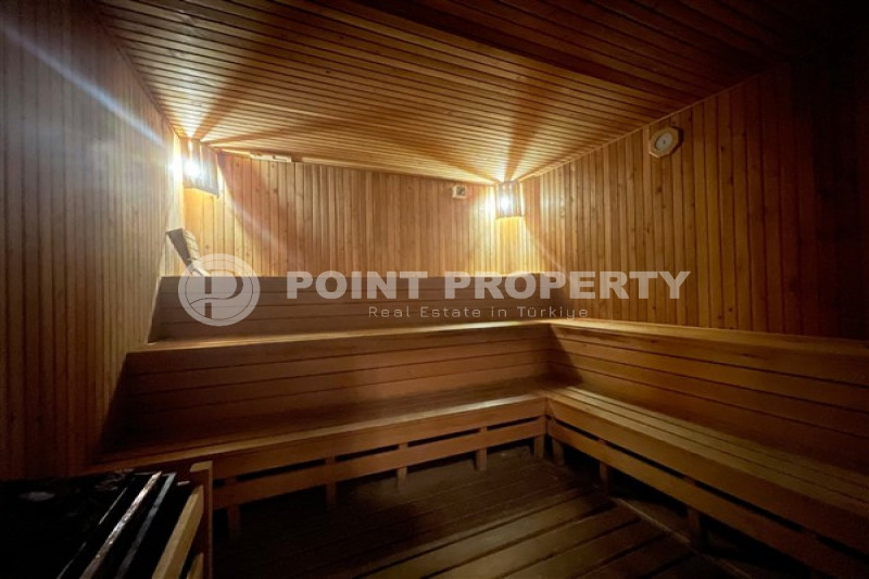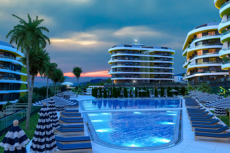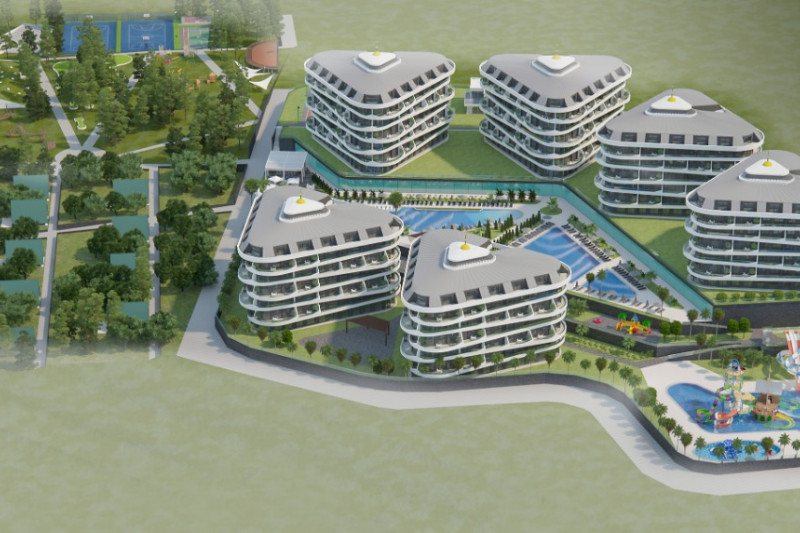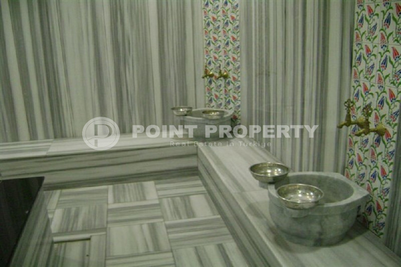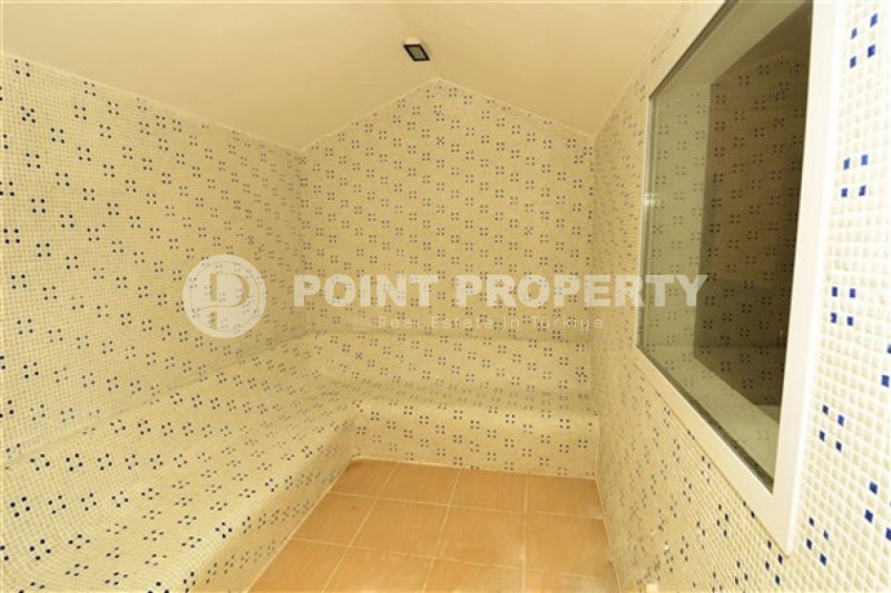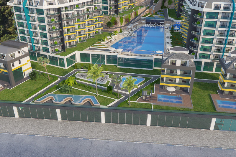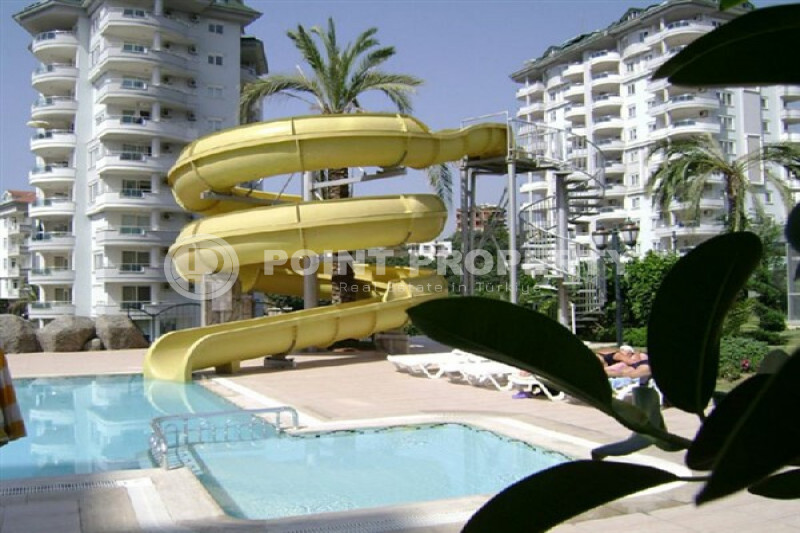Апартаменты расположены в закрытом жилом комплексе, территория которого скорее напоминает роскошный ландшафтный парк с пальмами, цветочными клумбами и аккуратно остриженными кустами. Для досуга и приятного времяпровождения в резиденции имеются бассейн с аквагорками, теннисный корт, баскетбольная площадка, поле для мини гольфа, фитнес клуб, сауна, зона барбекю с беседкой, детская площадка и стол для игры в пинг-понг. Для удобства жителей за каждой квартирой закреплено отдельное парковочное место, а безопасность обеспечивает круглосуточная охрана. Ежемесячная плата за содержание территории и инфраструктуры комплекса составляет 1000 турецких лир, что относительно немного для предоставляемого спектра услуг.