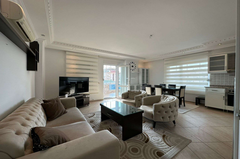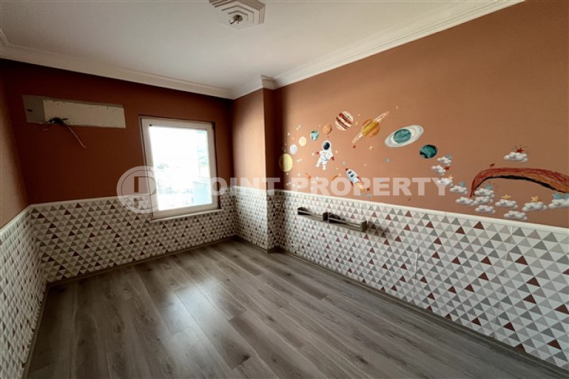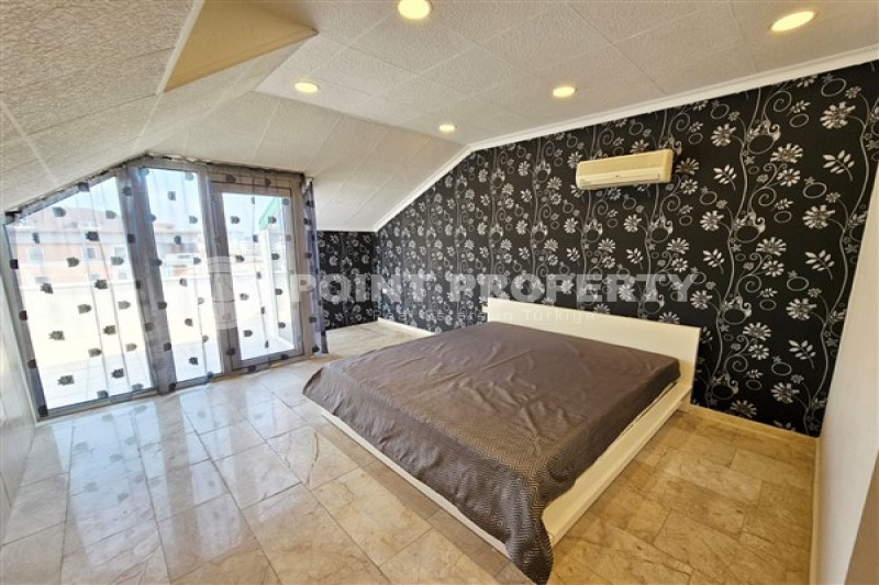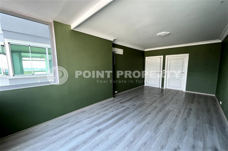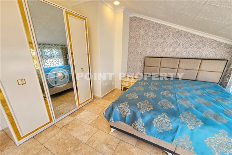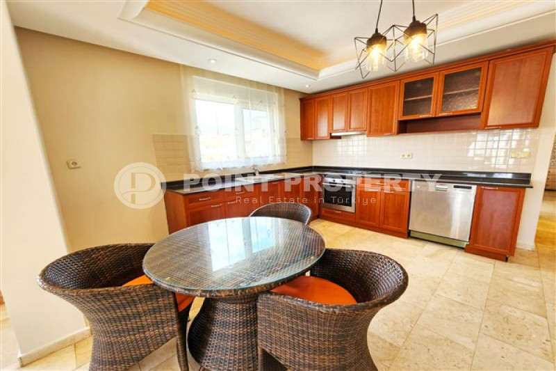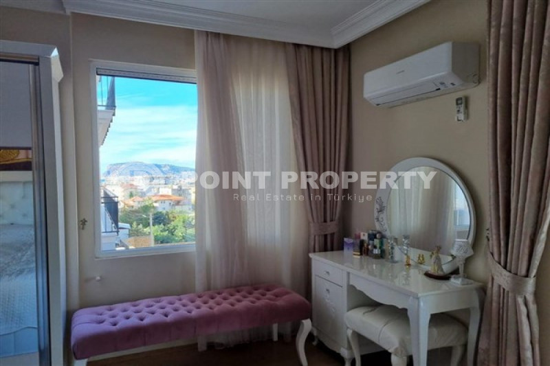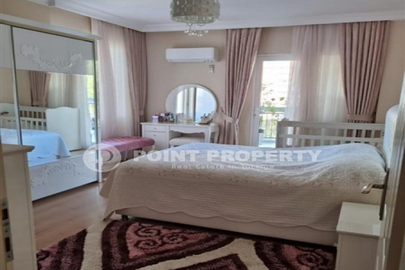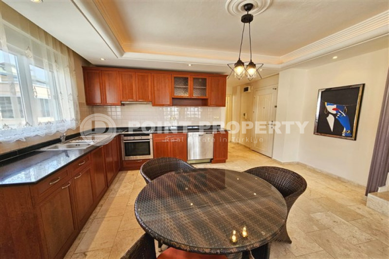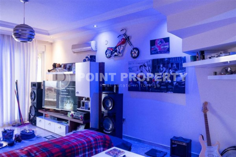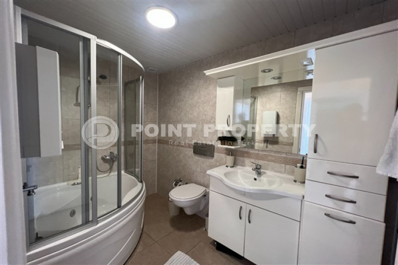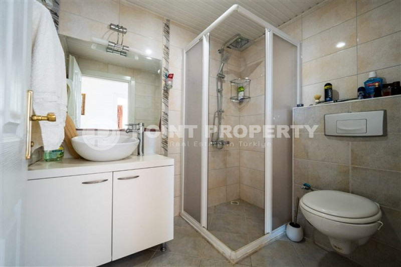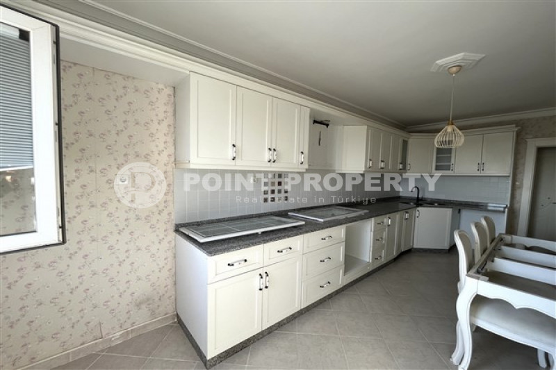 Если вас прельщает размеренный ритм жизни в окружении тишины, спокойствия и натуральной природы, советуем обратить внимание на просторный дуплекс 2+2 на 4-м этаже с мансардой в центре района Джикджилли и в километре от моря. На 190 м² расположились два салона, кухня, две спальни, два санузла, балкон и большая открытая терраса с видом на внутренний двор. Апартаменты выставлены на продажу с мебелью и бытовой техникой и полностью готовы к проживанию. В гостиных имеются комфортабельные мягкие диваны и гарнитуры, в спальнях - удобные кровати, в санузлах установлены душевые кабины, кухня оснащена встроенной бытовой техникой, а на балконах и террасе организованы полноценные зоны отдыха с садовой мебелью. Дизайн дуплекса светлый и приятный и выдержан в едином стиле, поэтому новым владельцам не составит труда придать квартире собственный стиль и изюминку, добавив лишь некоторые элементы декора.