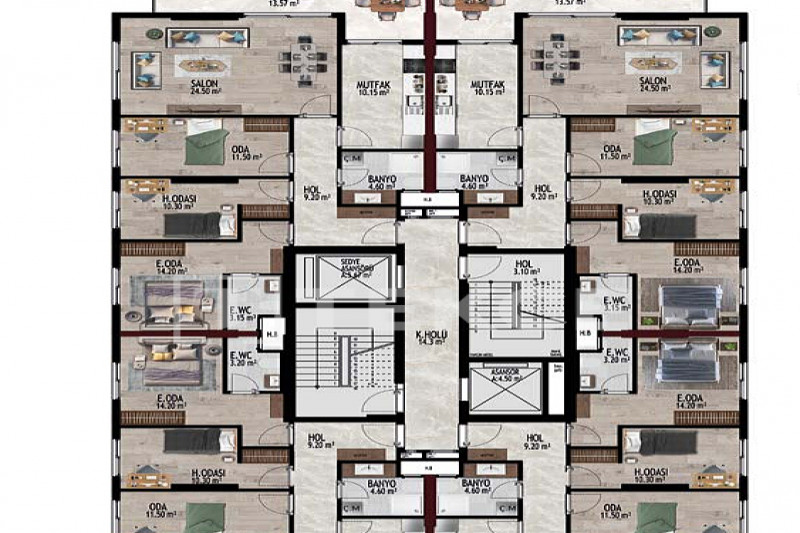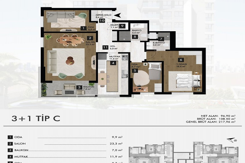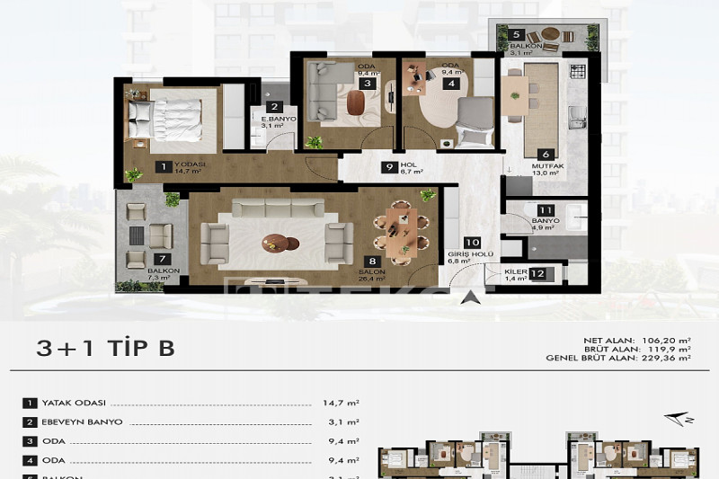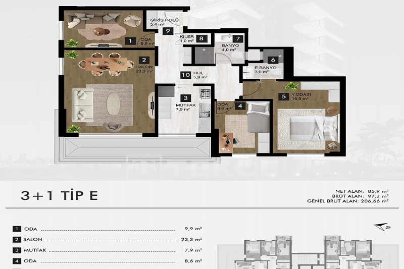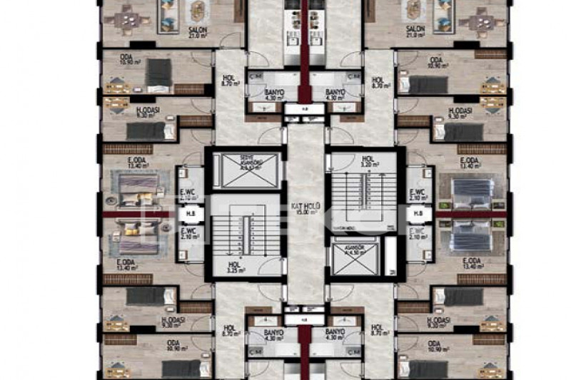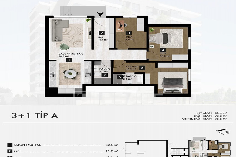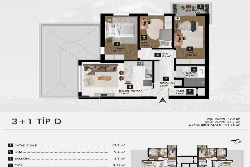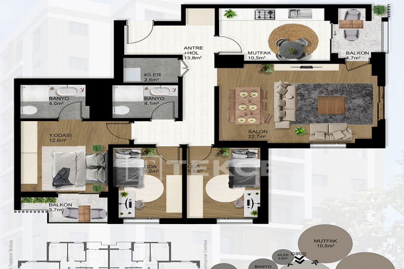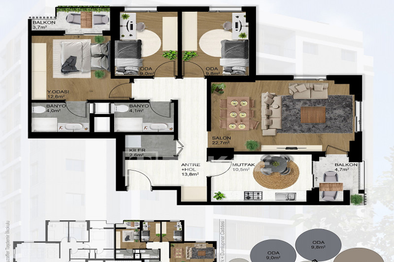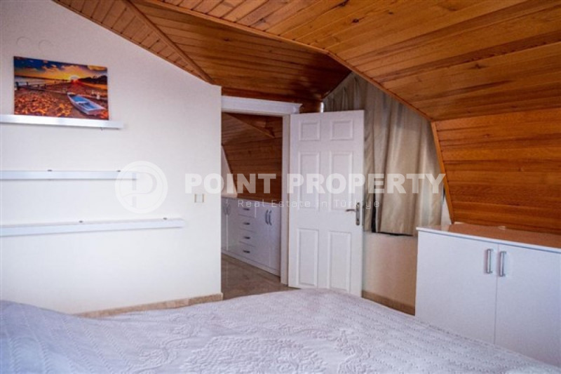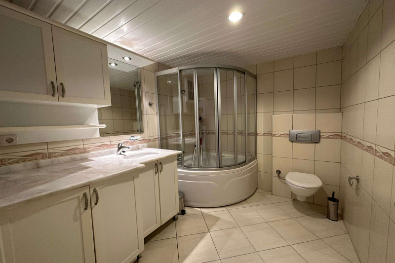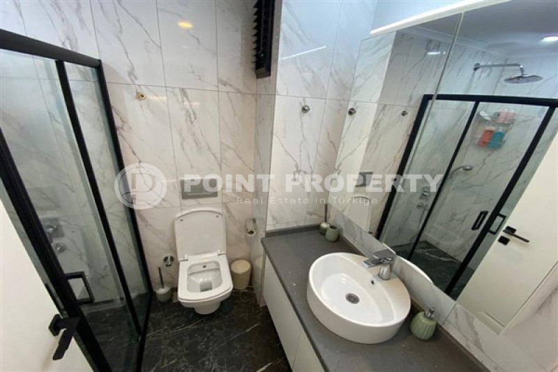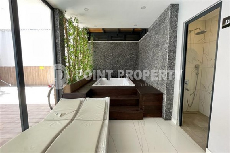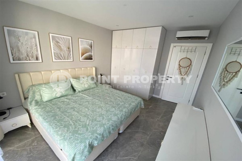 Если вас прельщает размеренный ритм жизни в окружении тишины, спокойствия и натуральной природы, советуем обратить внимание на просторный дуплекс 2+2 на 4-м этаже с мансардой в центре района Джикджилли и в километре от моря. На 190 м² расположились два салона, кухня, две спальни, два санузла, балкон и большая открытая терраса с видом на внутренний двор. Апартаменты выставлены на продажу с мебелью и бытовой техникой и полностью готовы к проживанию. В гостиных имеются комфортабельные мягкие диваны и гарнитуры, в спальнях - удобные кровати, в санузлах установлены душевые кабины, кухня оснащена встроенной бытовой техникой, а на балконах и террасе организованы полноценные зоны отдыха с садовой мебелью. Дизайн дуплекса светлый и приятный и выдержан в едином стиле, поэтому новым владельцам не составит труда придать квартире собственный стиль и изюминку, добавив лишь некоторые элементы декора.