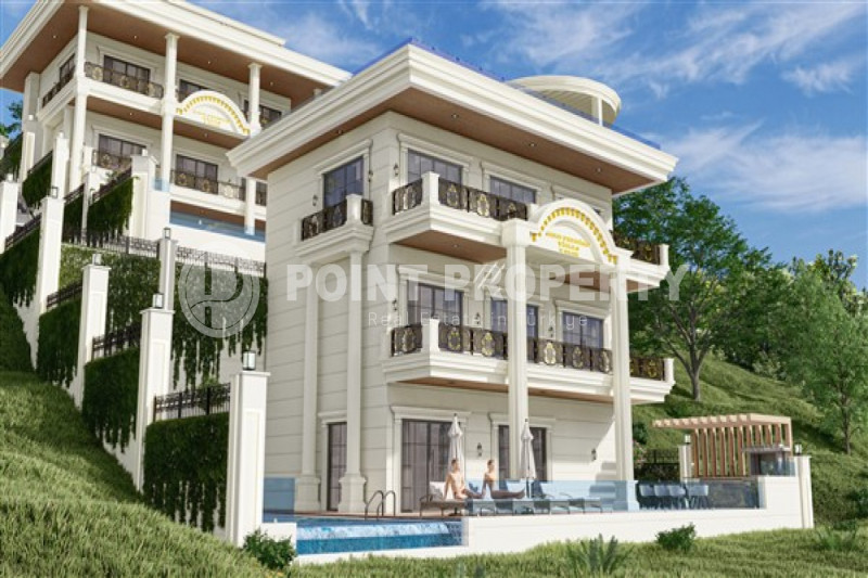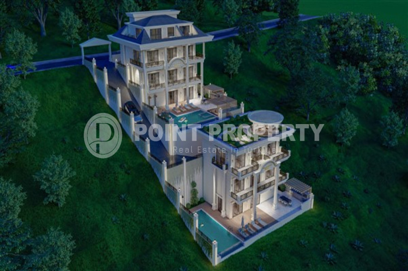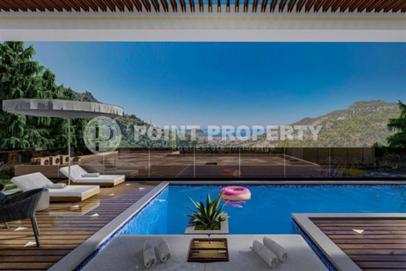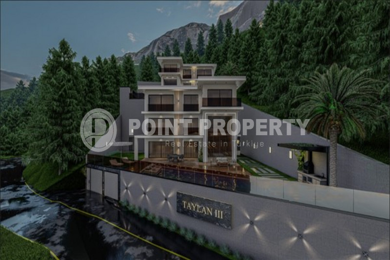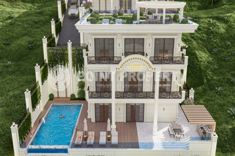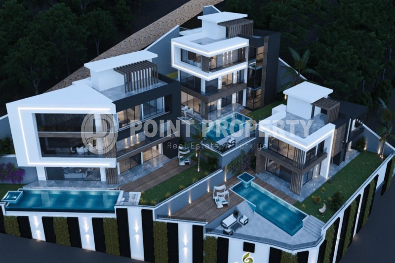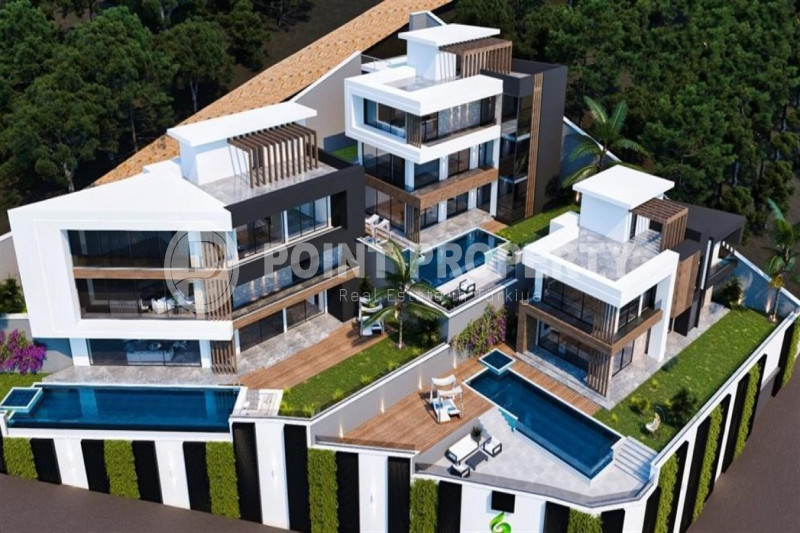 Также, виллы имеют свой собственный бассейн площадью 41 м² и 2 крытых гаража. На каждом этаже полы с подогревом, в любое время года подогрев бассейна, есть сауна, система "умный дом". Изюминкой проекта, несомненно, является панорамный вид на море из каждой комнаты. Локация более, чем удачная: в одном километре от школы, в 500 метрах от остановки общественного транспорта и ресторанов, в трех километрах от моря и 2,5 километров до центра Аланьи.