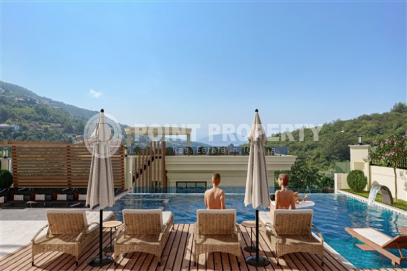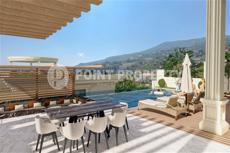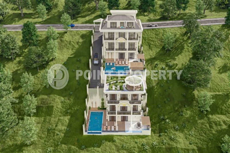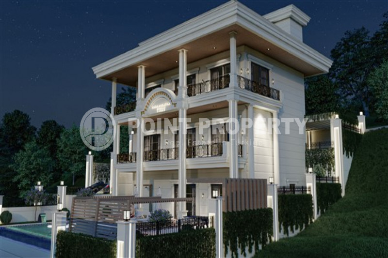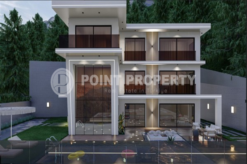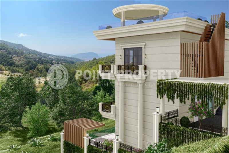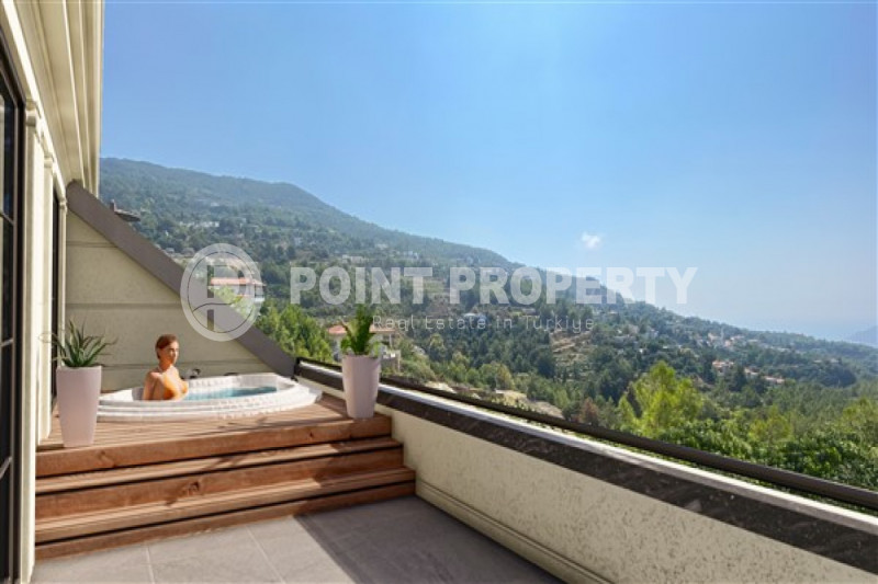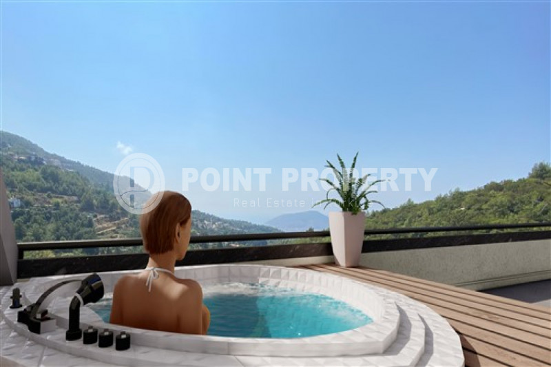 Также, виллы имеют свой собственный бассейн площадью 41 м² и 2 крытых гаража. На каждом этаже полы с подогревом, в любое время года подогрев бассейна, есть сауна, система "умный дом". Изюминкой проекта, несомненно, является панорамный вид на море из каждой комнаты. Локация более, чем удачная: в одном километре от школы, в 500 метрах от остановки общественного транспорта и ресторанов, в трех километрах от моря и 2,5 километров до центра Аланьи.