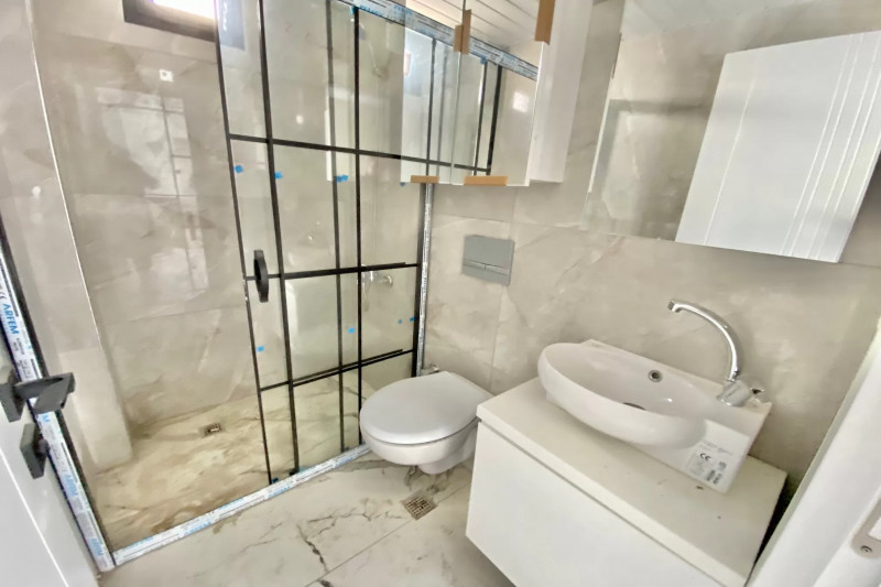 В портфолио компании 1-Property имеется небольшая квартира, общей площадью 55 м², на 3-м этаже в доме 2011 года постройки в районе Паяллар. В планировке апартаментов - совмещенная с кухней гостиная, спальня, санузел и балкон с видом на город, горы и море. Интерьер комнат простой и классический, с преобладанием теплых светлых оттенков. В салоне имеются комфортабельный диван и обеденный стол, в спальне - большая удобная кровать, кухня оснащена необходимой бытовой техникой, а в санузле установлена душевая кабина и керамика. Квартира выставлена на продажу с мебелью и бытовой техникой, что позволяет новым владельцам переезжать непосредственно после заключения сделки.