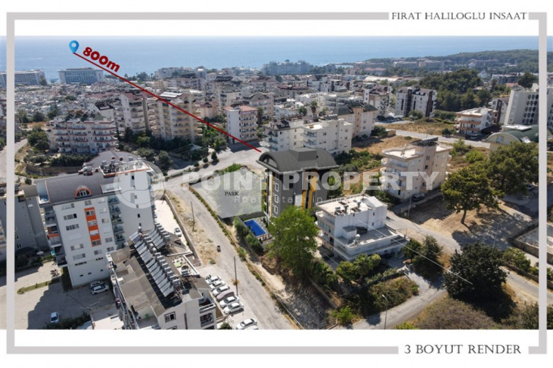 На прилегающей к зданию территории к услугам жителей предоставлены бассейн и небольшой сад, а все основные объекты городской инфраструктуры находятся в полутора километрах - в центре района Паяллар. Тут есть магазины, пекарни, кафе, аптеки, банкоматы и отделения связи. Благодаря хорошей транспортной развязке за несколько минут можно добраться в центр Аланьи или в любую часть города. Расстояние от квартиры до моря - два километра. Местный пляж длинный и песчаный, с пологим входом в море, за что ему часто отдают предпочтение семьи с маленькими детьми и люди в возрасте. Власти Аланьи уделяют огромное внимание благоустройству и озеленению побережья, с каждым годом появляются новые парки и скверы, и уже утвержден проект новой набережной с цветочными клумбами, зелеными лужайками, велодорожками и уютными зонами отдыха.