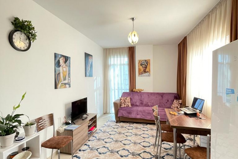 Небольшая бюджетная квартира 1+1 на 3-м этаже в доме 2011 года постройки с бассейном и садом.