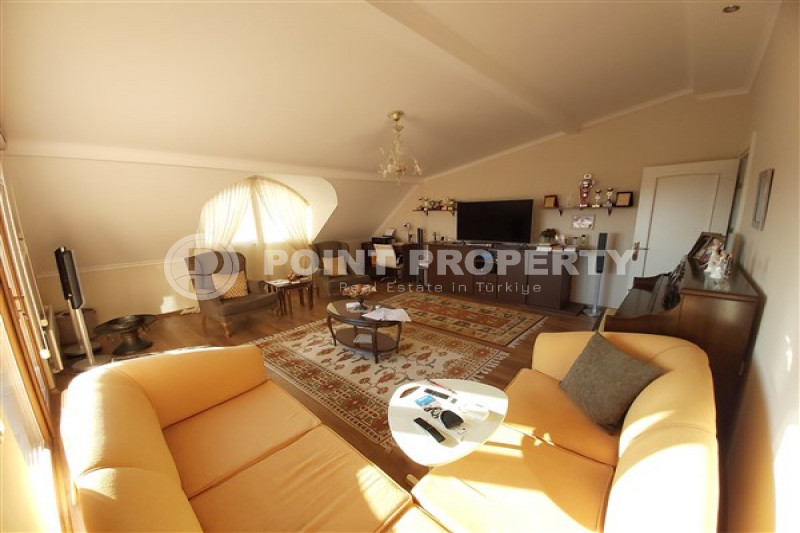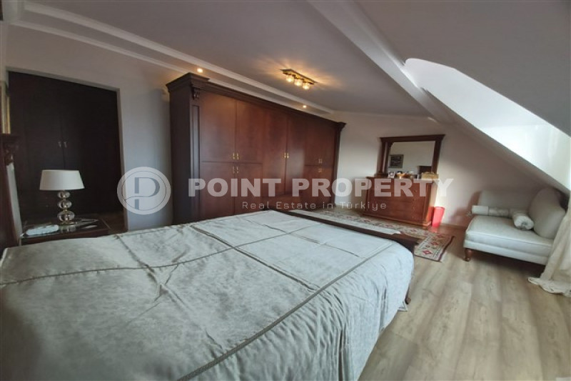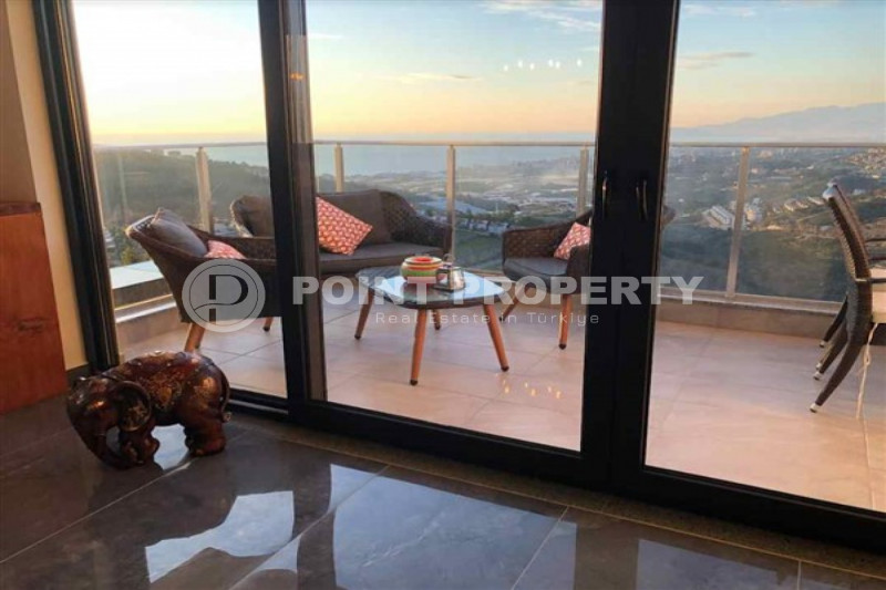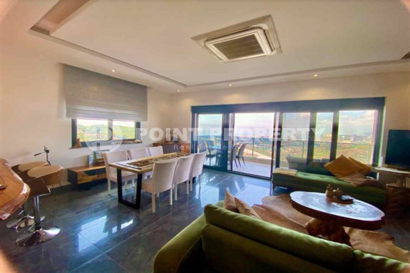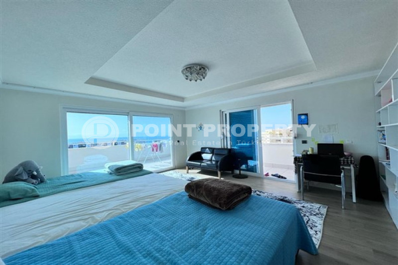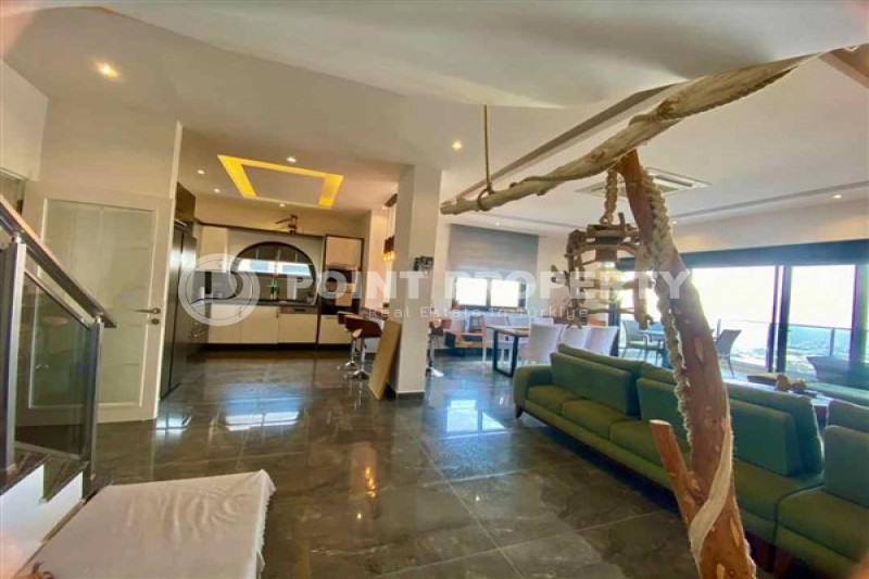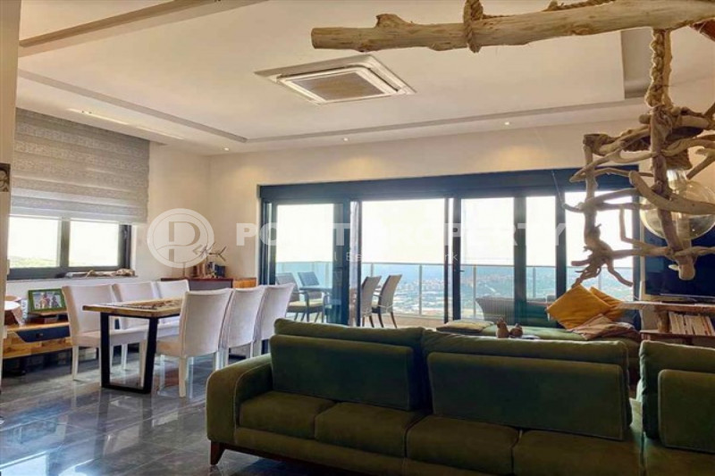 Большой дуплекс 4+1 с чистовой отделкой на 12-м этаже с мансардой с панорамным видом на море и город.