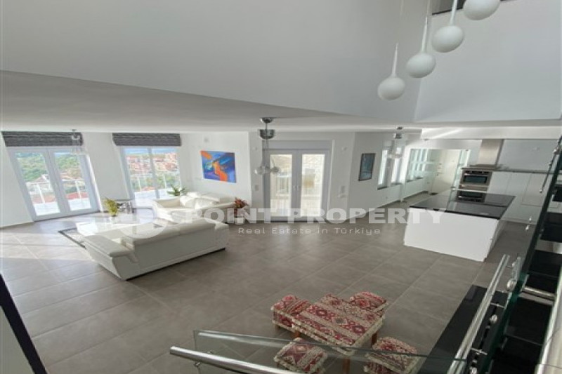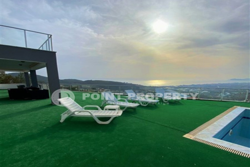 Предлагаем вам рассмотреть возможность приобретения новой шикарной виллы с планировкой 4+1. Обратите внимание на фотографии, представленные вместе с описанием объекта. Вам понравится большая площадь жилых помещений 300 м² вкупе с дизайном интерьера, новой красивой мебелью, включённой в стоимость жилья, и всем остальным, необходимым для проживания. Эта дуплексная вилла 2022 года обставлена поистине с королевским размахом. Роскошные кровати в спальных комнатах, диваны и кресла в гостиной, новая сантехника в трёх ванных комнатах. Два обзорных балкона и терраса открывают для новых собственников панорамный вид на старинный город и морской берег. Помимо этого, жилые помещения оборудованы бильярдом и кинозалом. Рядом с виллой находится большой садовый участок рядом с открытым бассейном.