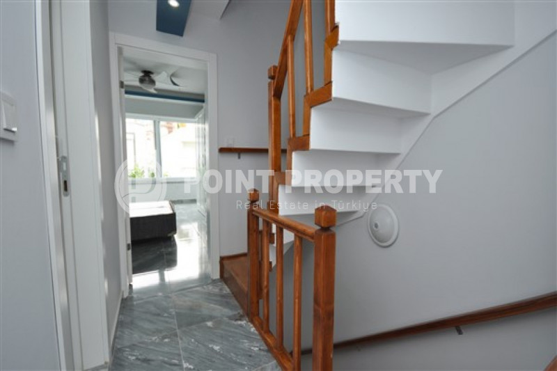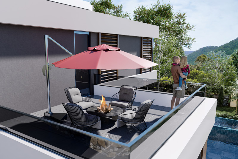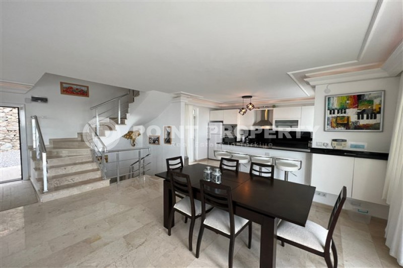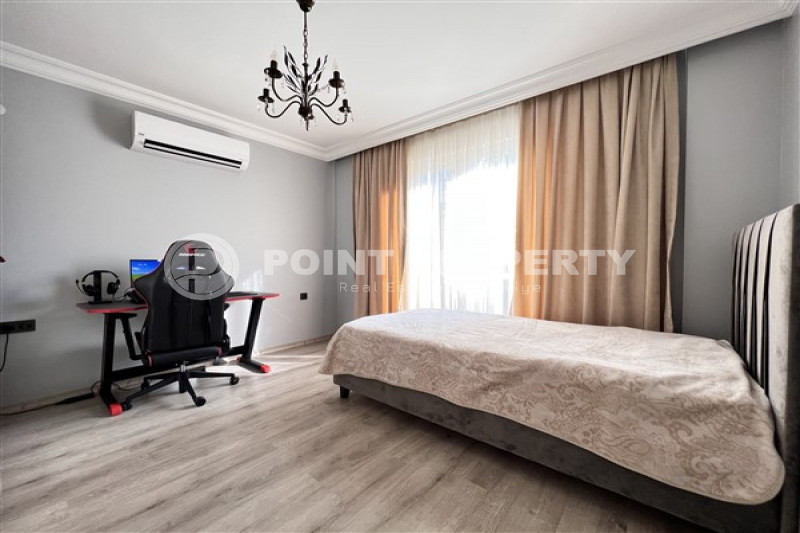 Общая площадь триплекса - 200 м², он имеет просторную гостиную с кухней, четыре спальни, три санузла, три балкона и террасу с видом на банановые плантации, море и горы. Дизайн виллы выдержан в лаконичном стиле, в интерьере присутствуют спокойные светлые тона, поэтому новым владельцам легко будет дополнить его интересными элементами и придать изюминку. Все комнаты просторные, оснащенные кондиционерами и обставленные необходимой мебелью и техникой.