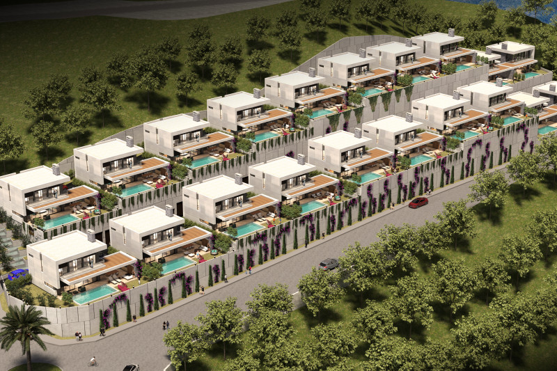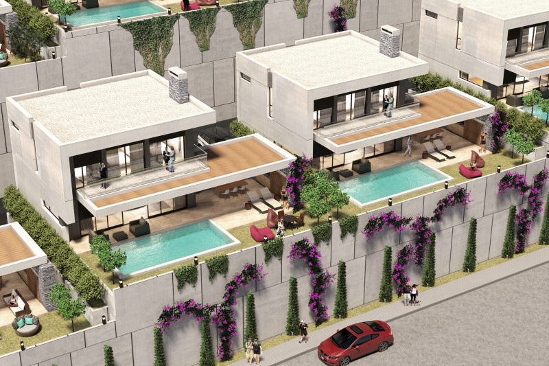 Триплекс является "виллой - близнецом", с отдельным входом и территорией. Площадь участка - 400 м², он облагорожен дорожками, беседкой, зоной для барбекю, зелеными лужайками и цитрусовыми деревьями. Во дворике имеется также бассейн, предназначенный для пользования владельцев "вилл - близнецов". А наличие крытого паркинга является неотъемлемой частью любого частного дома.