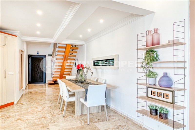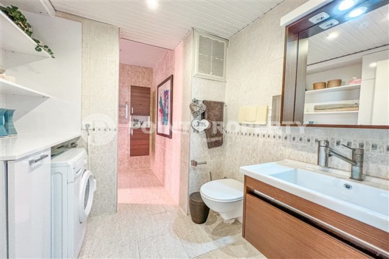 Пентхаус расположен в доме 2013 года постройки с лифтом, и тут уже имеется внутренняя инфраструктура – крытый и открытый бассейны, аквапарк, фитнес клуб, сауна, хамам. Территория комплекса ухоженная и зеленая, с собственным паркингом, что немаловажно для центра оживленного района Махмутлар, ведь расстояние до него всего 100 метров. Дорога до пляжа займет несколько минут – набережная расположена в 400 метрах. Вдоль всего побережья разместились рестораны и ночные клубы, пляжные комплексы и сувенирные лавки, туристические агентства и разнообразные магазины. Район Махмутлар пользуется популярность у туристов и летом и зимой благодаря мягкому климату, живописным панорамам моря и гор, свежему чистому воздуху и очаровательной атмосфере курорта. Именно поэтому многие путешественники, попадая сюда, решают отклониться от запланированного ранее маршрута и провести год – два на побережье Средиземного моря с гостеприимной Турции.