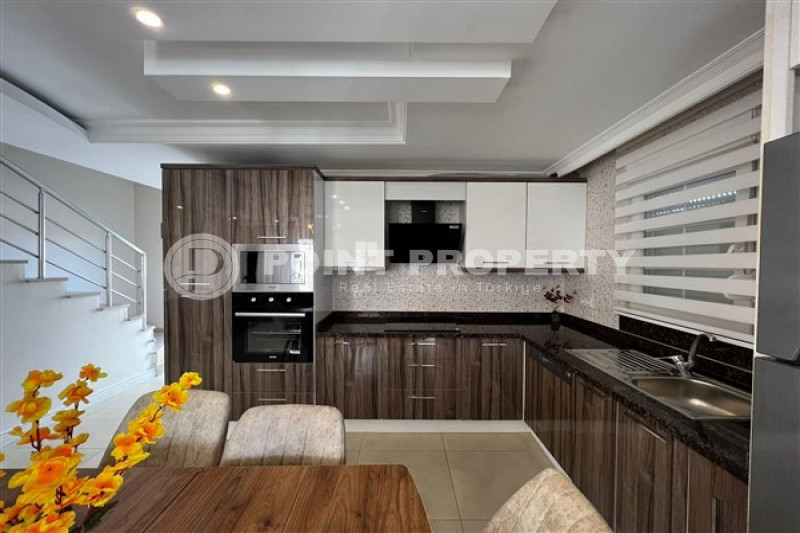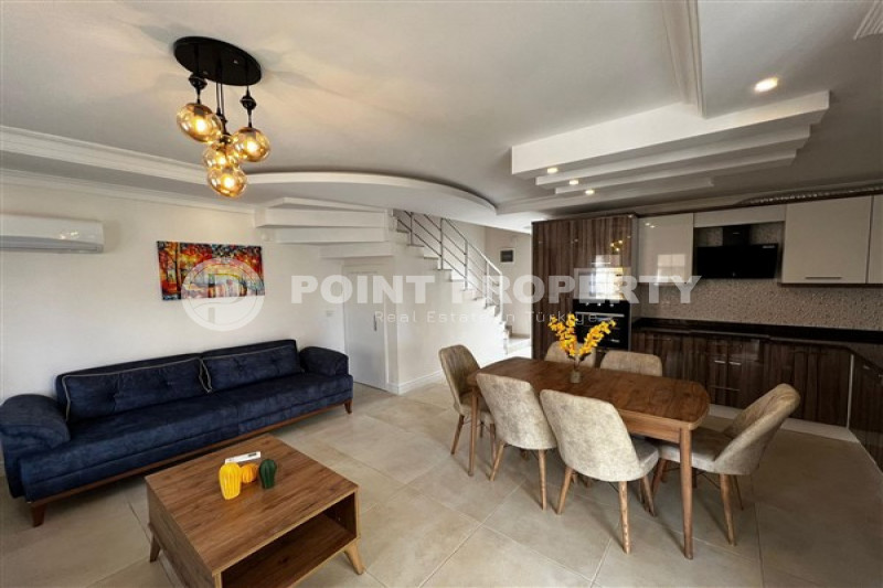 Современная дуплексная вилла 230 м², центр Аланьи, район Тепе, с бассейном и системой охраны