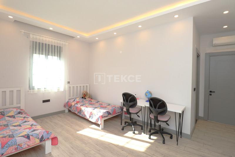 Любителям роскоши и комфортабельного жилья будет наверняка интересен этот вариант: дуплексная вилла площадью 250 м² с четырьмя спальными комнатами, тремя ванными, двумя балконами и террасой. Расположена на земельном участке недалеко от Торосских гор с общей площадью 450 м². Горный район Аланьи Тепе отличается удалённостью от моря, однако из его преимуществ стоить отметить эксклюзивность жилья наряду с тишиной и умиротворённостью района. Если вы устали от шума мегаполиса, то вам прямая дорога в район Тепе.