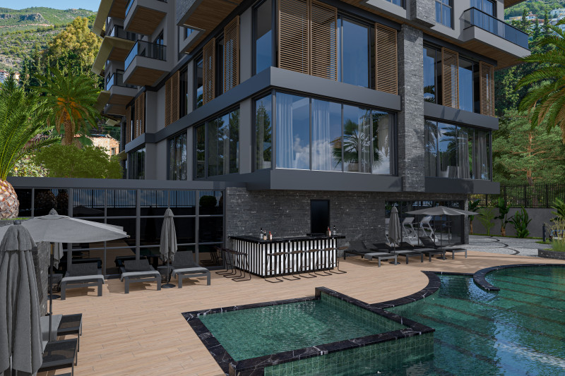 Респектабельная четырёхкомнатная квартира 250 м², с двумя роскошными балконами, в комплексе с отельной инфраструктурой, Джикджилли, Аланья