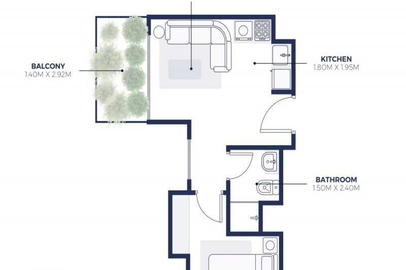 В этих апартаментах у вас будет 2 спальни, просторная гостиная, отдельная встроенная кухня, 1 балкон и 2 ванные комнаты.